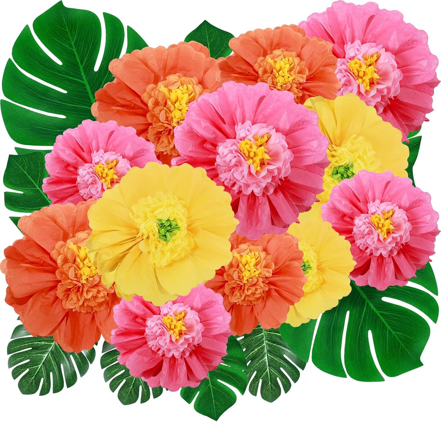 80 Pack Tropical Party Decorations Supplies Large Tissue Paper Hibiscus Flowers Faux Palm Leaves Set for Hawaiian Luau, Safari, Mexican Fiesta, Birthday Parties