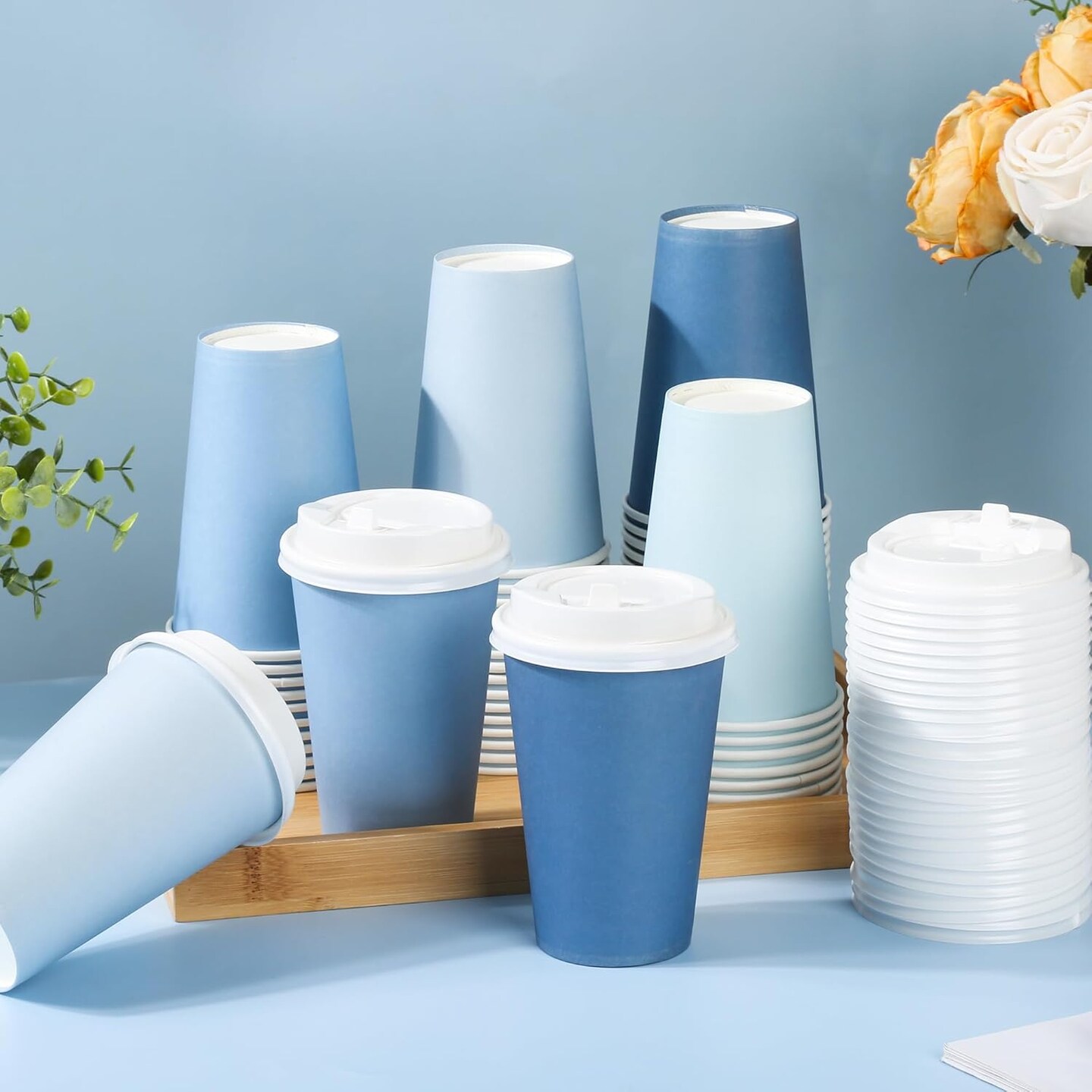 80 Pcs 12 oz Dusty Blue Disposable Coffee Cups with Lids Dusty Blue Gradient Party