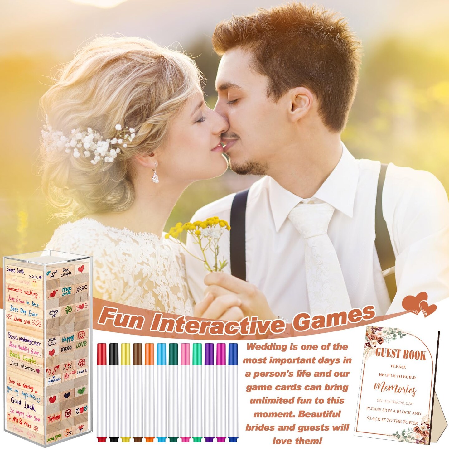 80 Pcs Wedding Guest Book Alternative Wooden Block Guest Book for Wedding Sign in Bridal Shower Decoration Wooden Block Bridal Shower Game for Sign in, Reception(Rustic)