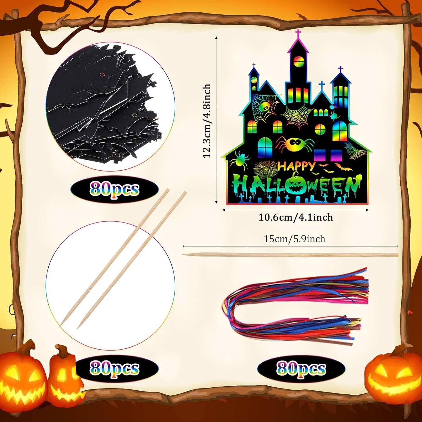 80 Pieces Haunted House Craft Scratch Cards - Halloween Craft Kits