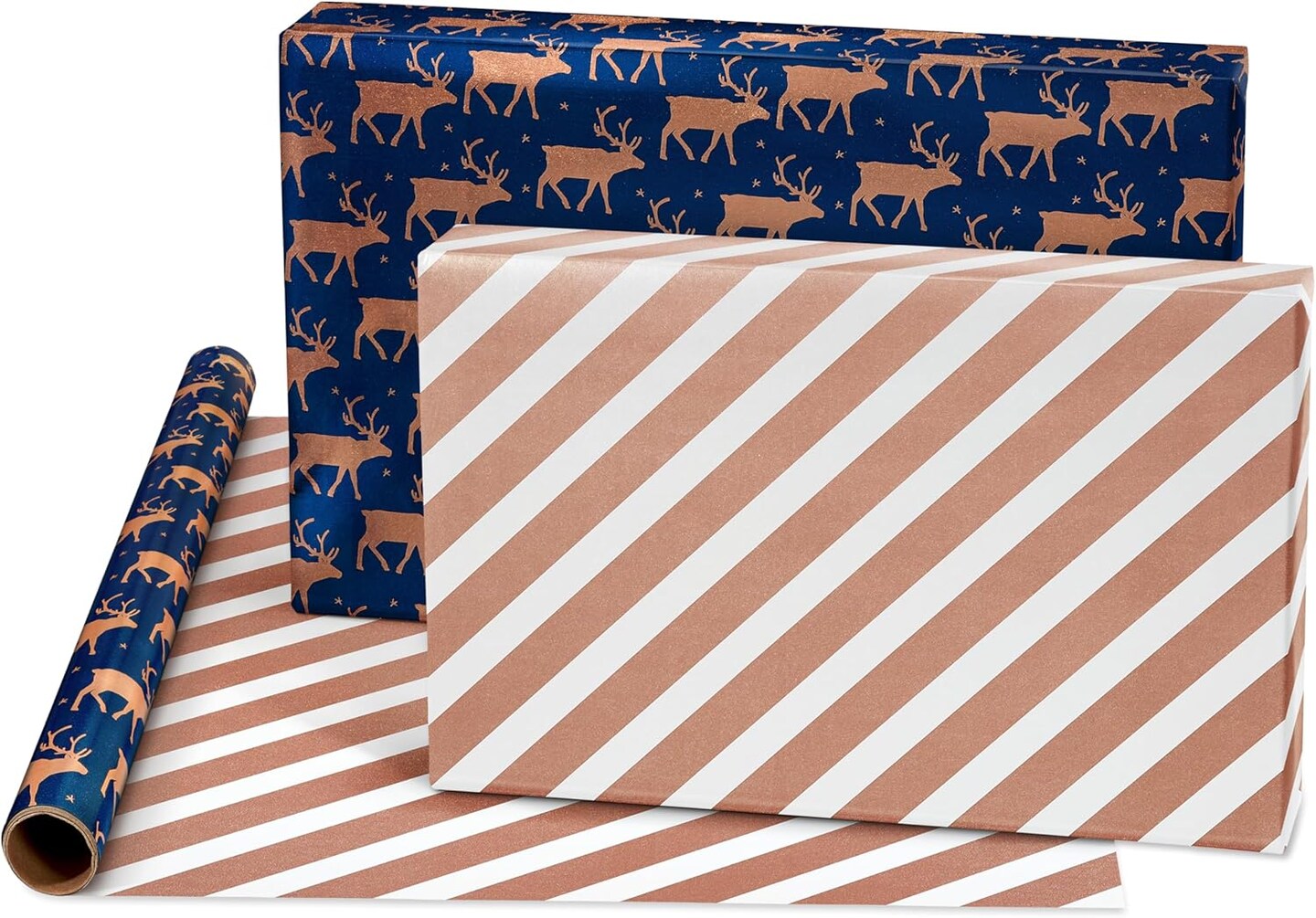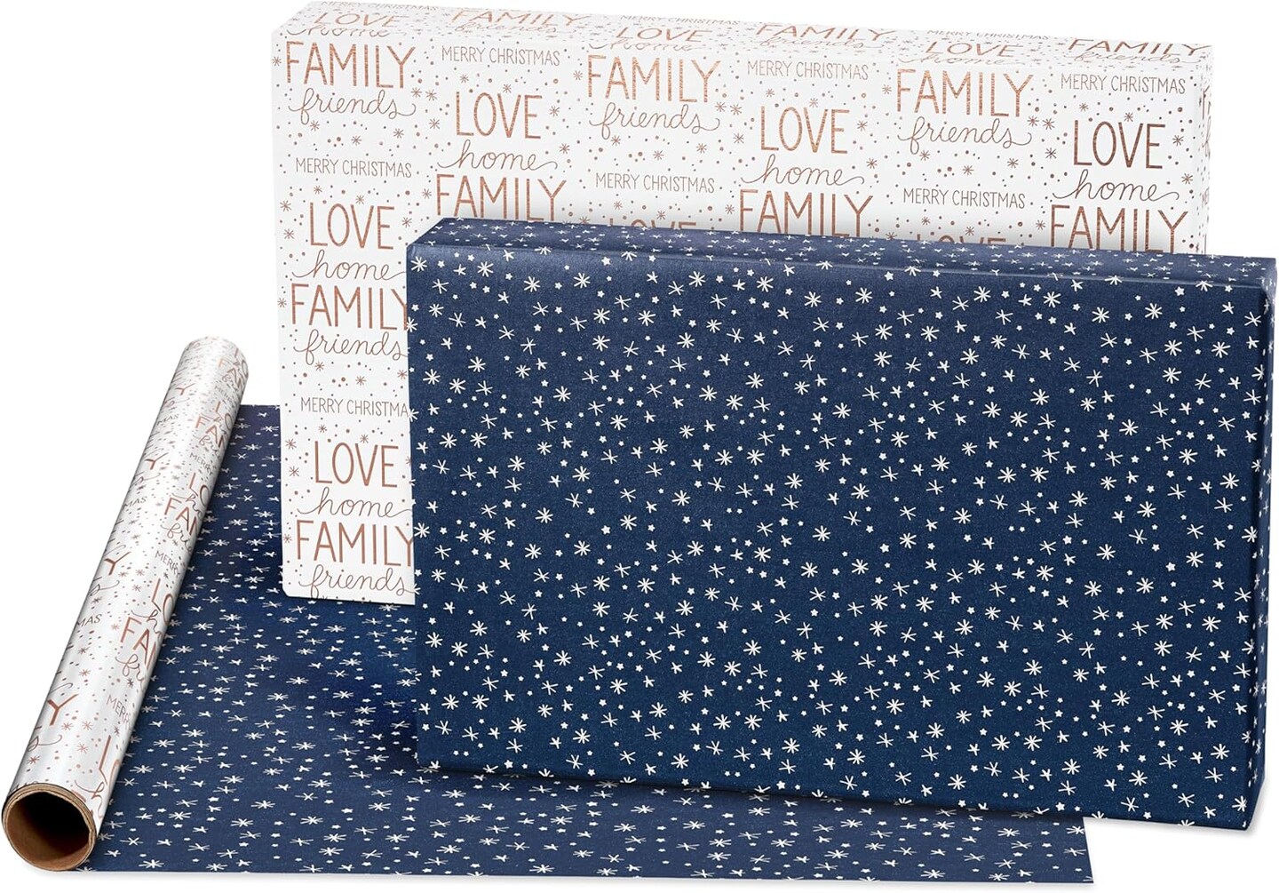 80 sq. ft. Reversible Blue Wrapping Paper Bundle for Christmas, Snowflake, Reindeer, Holiday (4 Rolls 30 in. x 8 ft.)