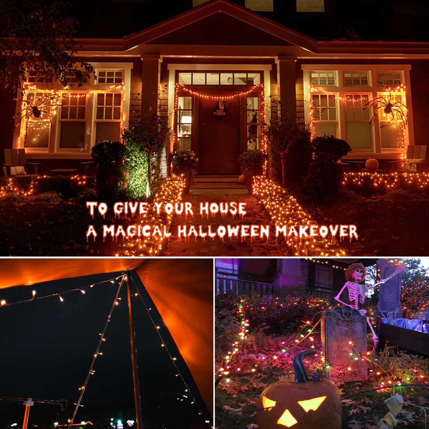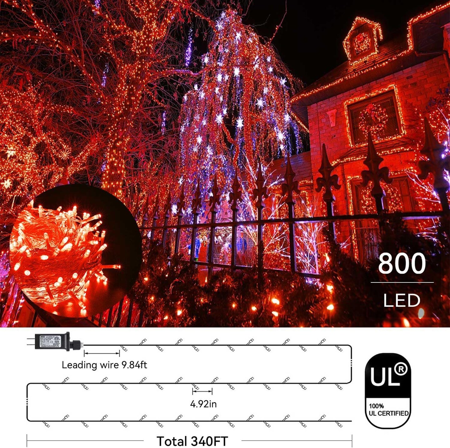 800LED Orange Halloween String Lights – 330FT, 8 Modes, Timer, Plug-In, Waterproof for Indoor & Outdoor Use (orange with remote)