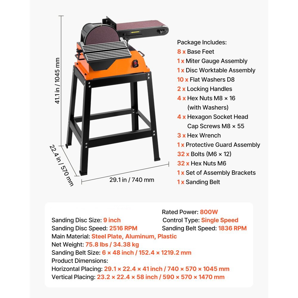 800W Belt Sander Disc Combo with Stand Woodworking and Sharpening