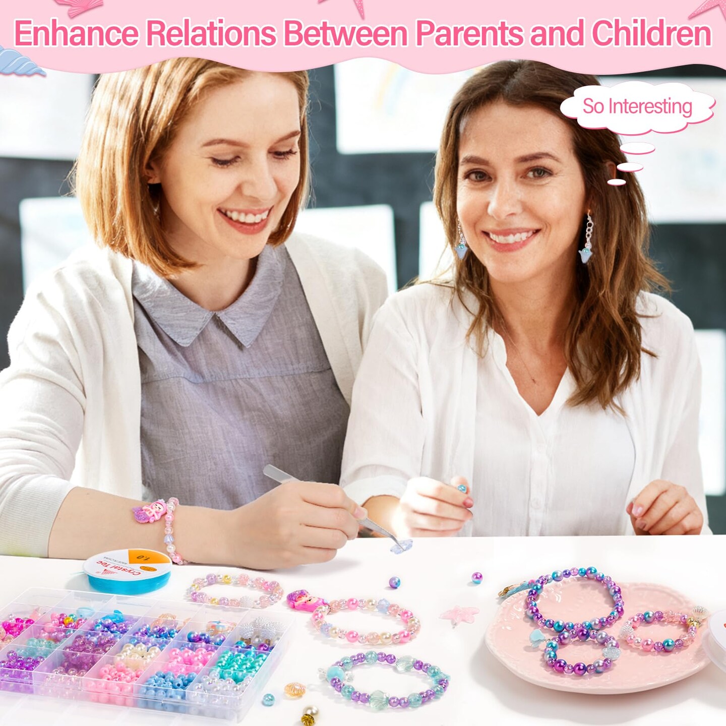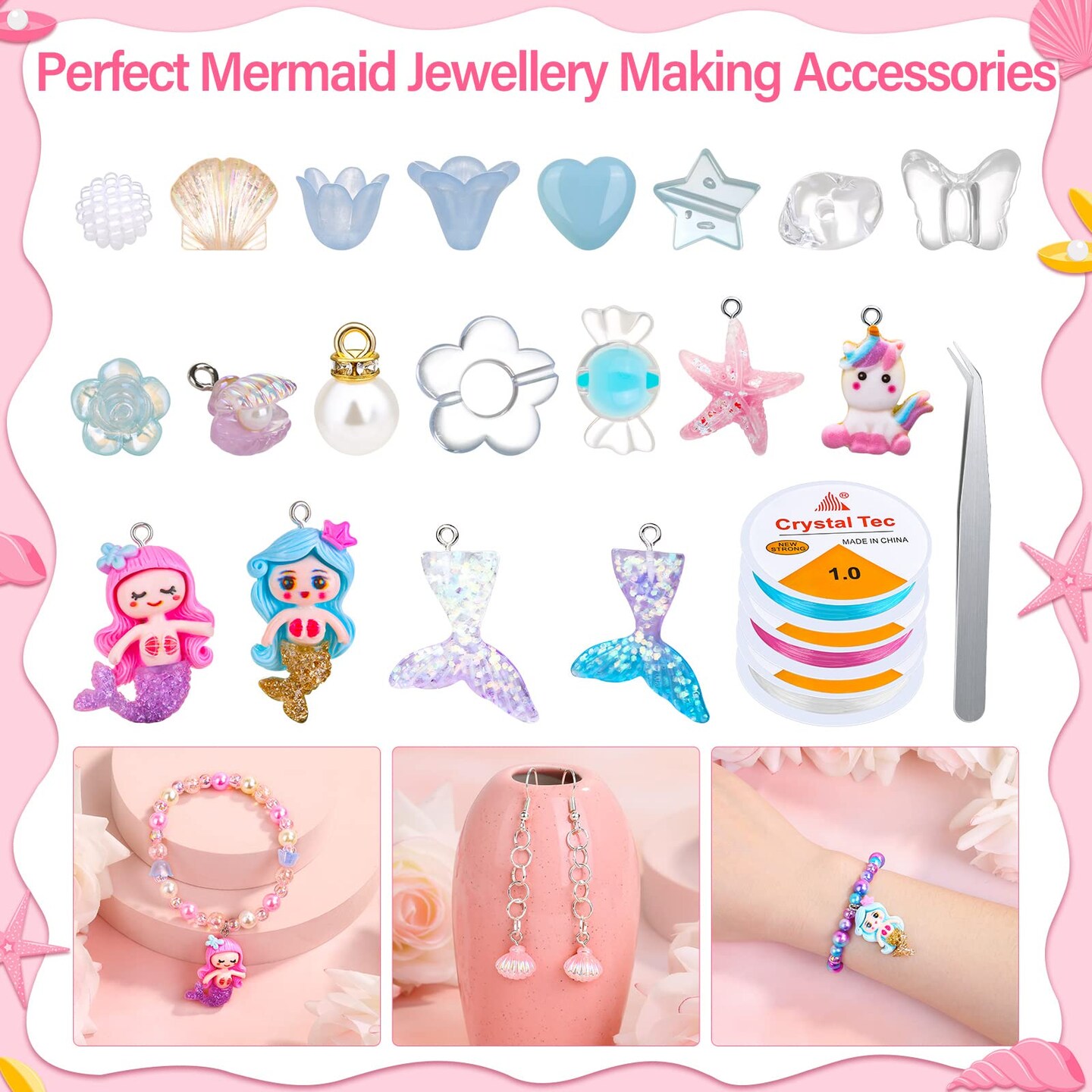 802Pcs Mermaid Beads Jewelry Making Kit, Mermaid-Inspired Beads & Charms Set with Elastic Strings and Tools, Bracelet & Necklace Craft Supplies (802 Pieces)