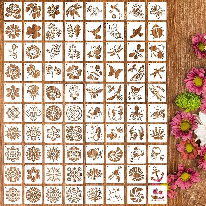 80PCS 3 Inch Plastic Small Craft Stencils - Reusable Rock & Home Decor Painting Stencils