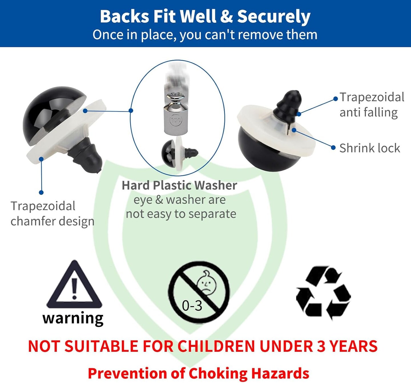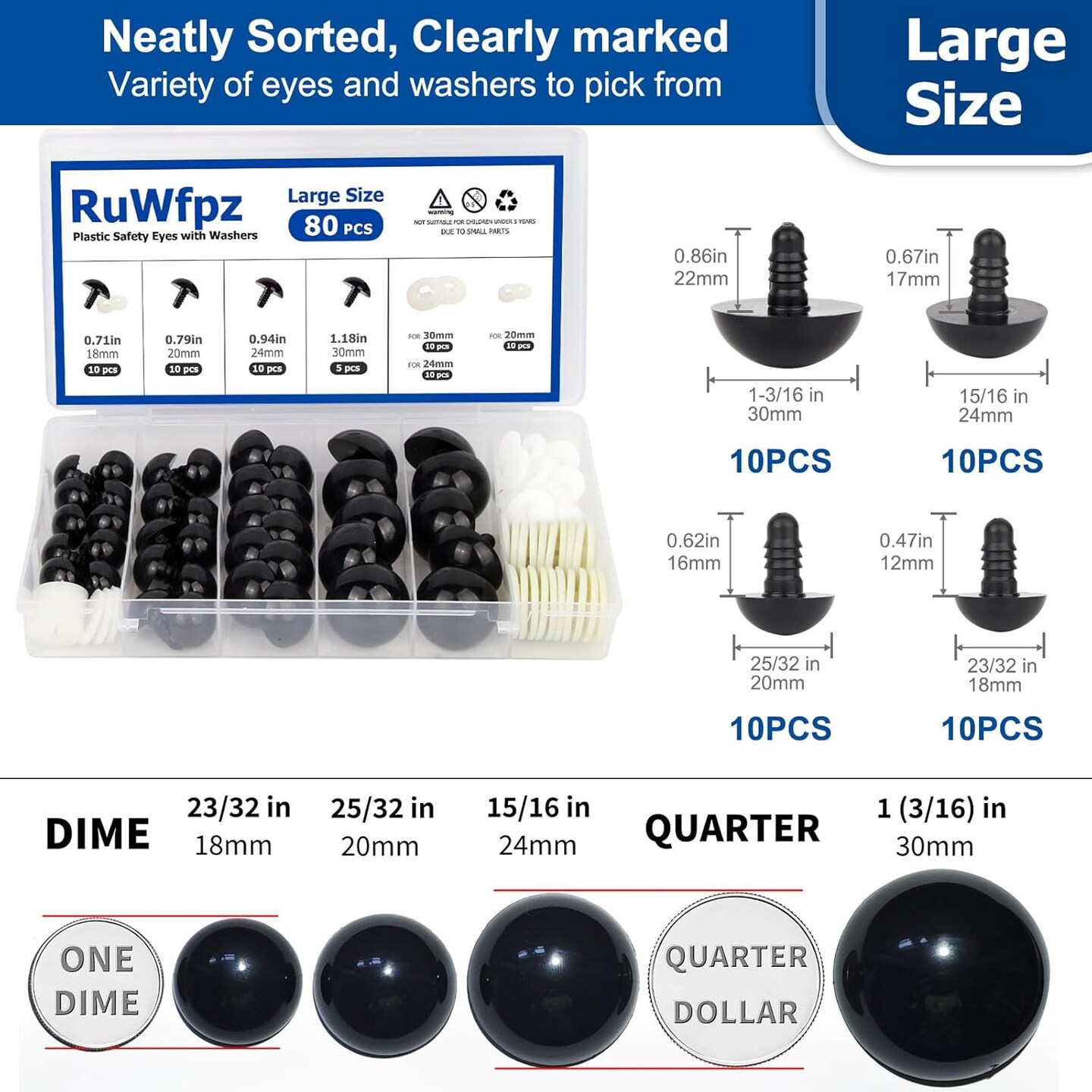 80-Piece Black Plastic Safety Eyes with Washers – 18mm–30mm (4 Sizes) for Amigurumi, Crochet Dolls, Plush Toys & DIY Crafts