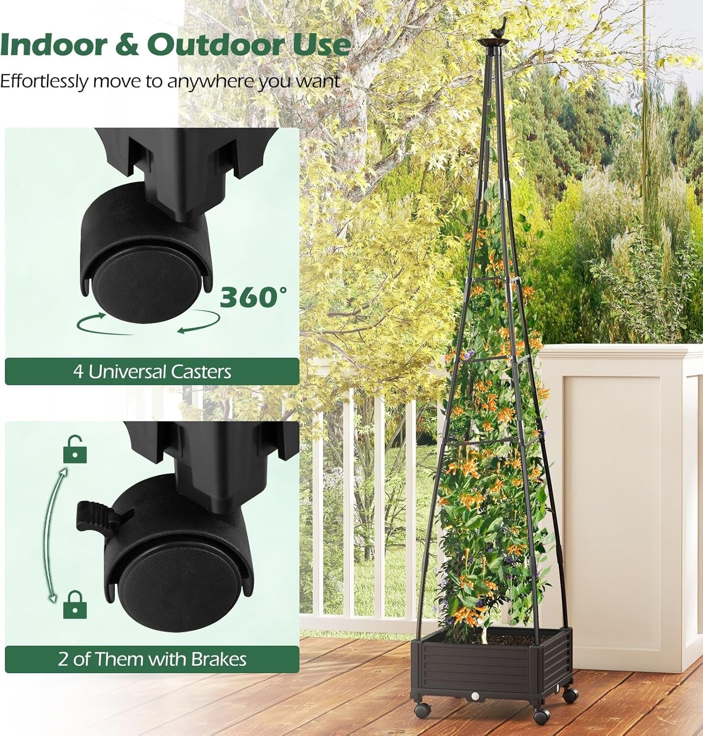 81” Raised Garden Bed with Tomato Cage, Self-Drainage & Adjustable Wheels