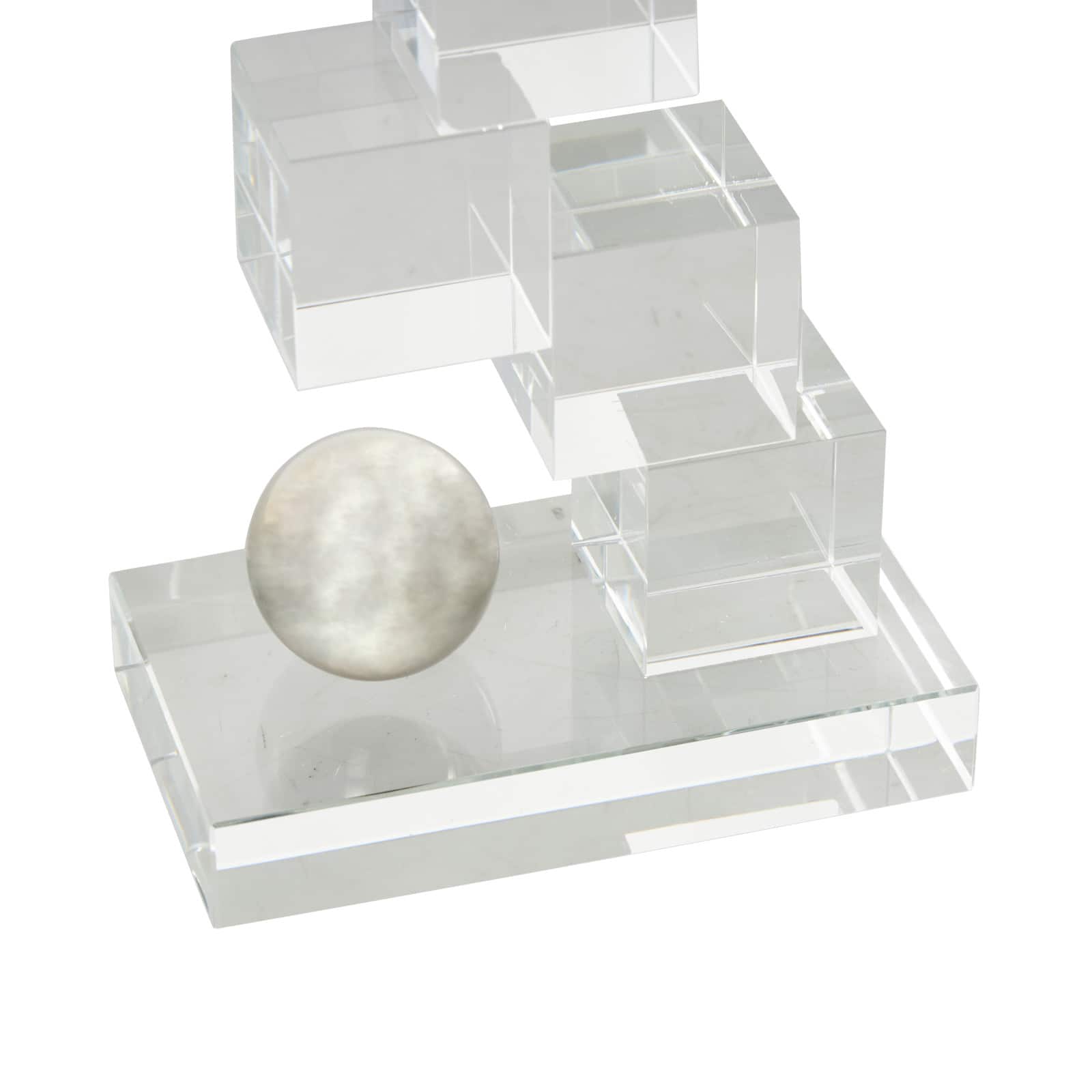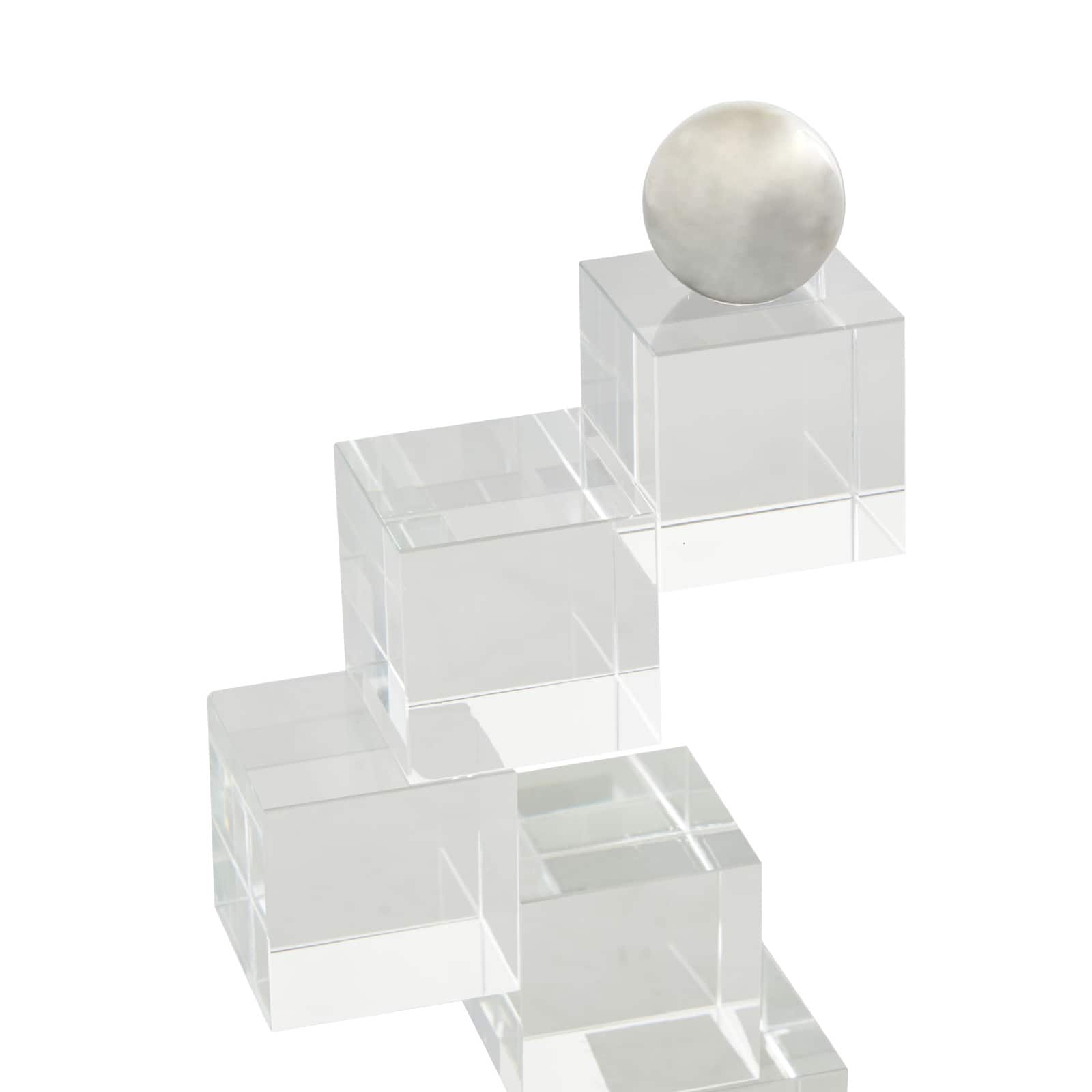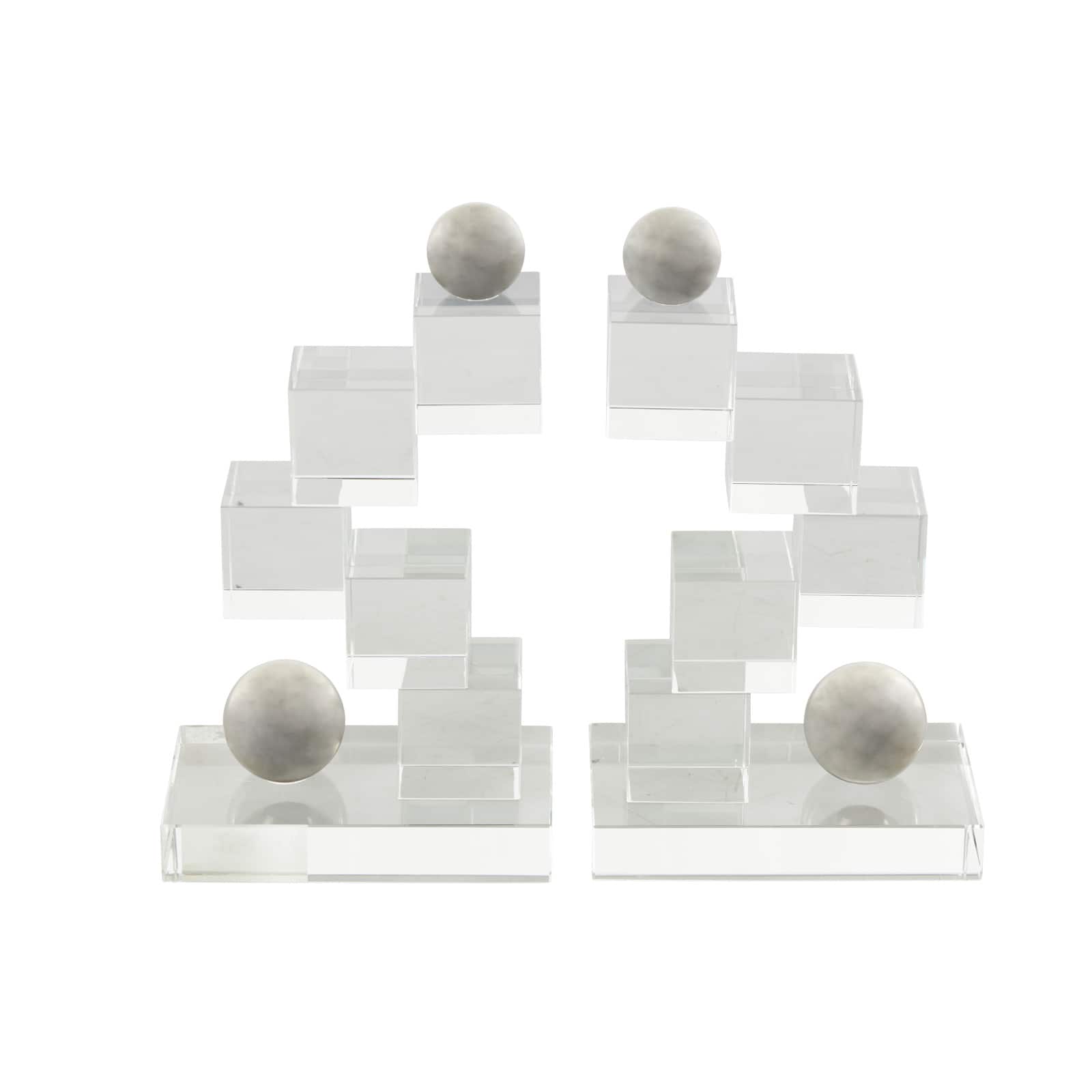 8.25" Clear Glass Stacked Squares Bookends with Silver Orbs, 2ct.