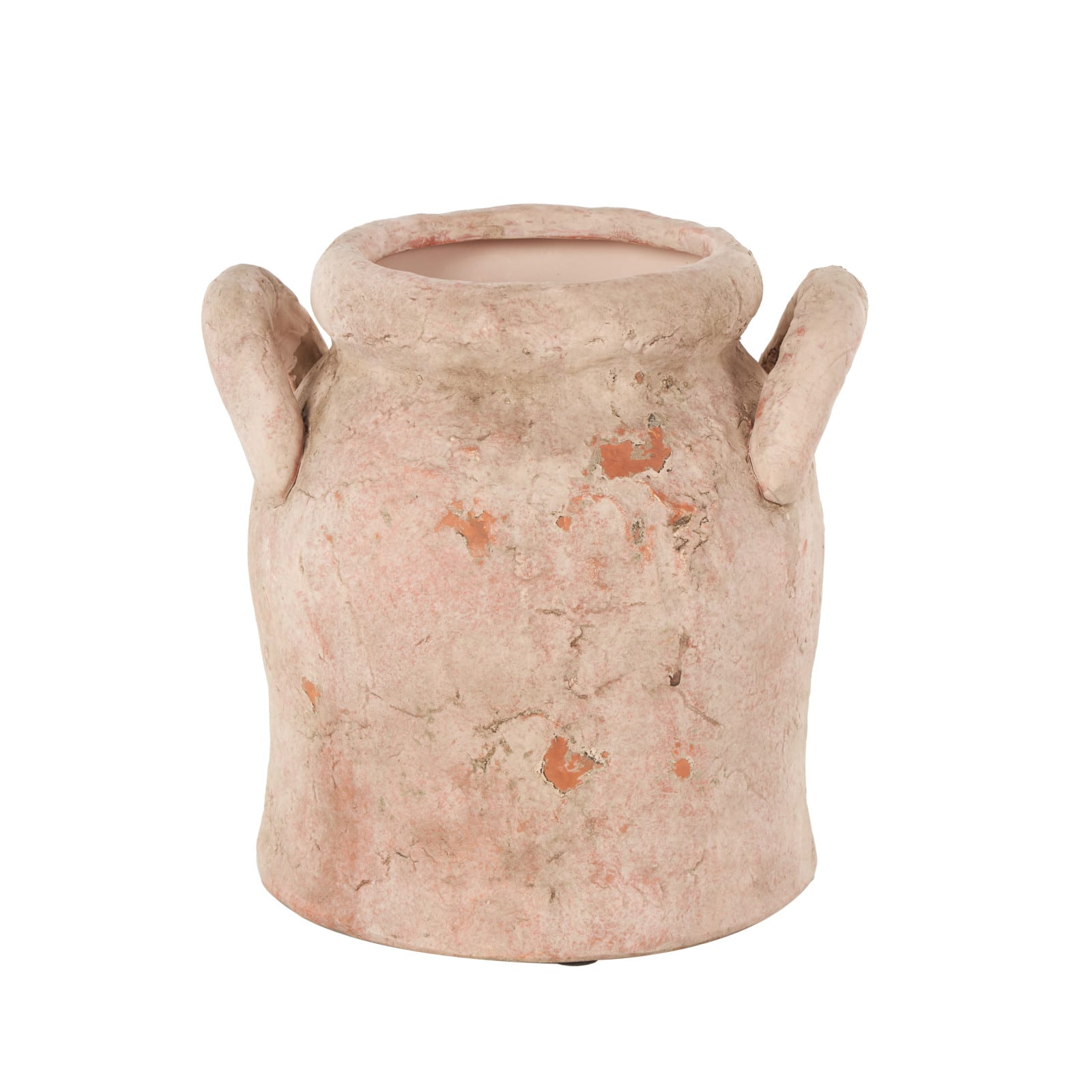 8.25" Pink Ceramic Antique Style Distressed Decorative Vase with Handles