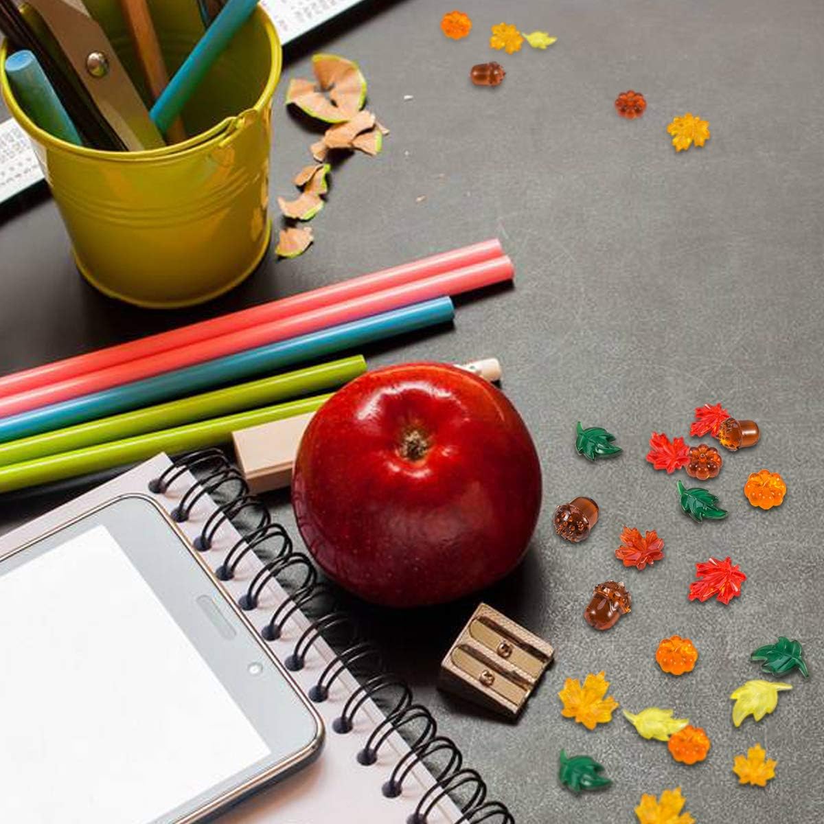 84 Pieces Acrylic Leaves Mini Acrylic Pumpkin Maple Leaves - 5 Colors