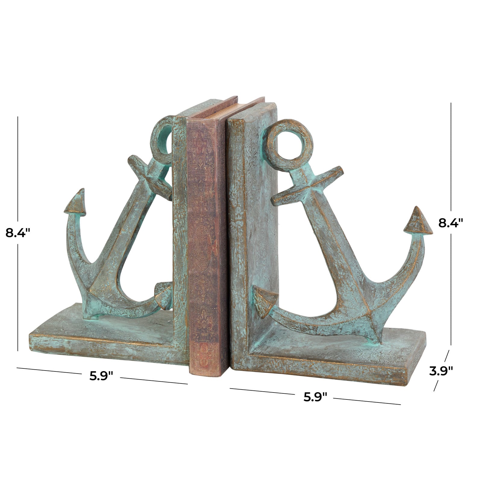 8.5" Blue Polystone Anchor Distressed Patina Bookends with Gold Foil Accents Set