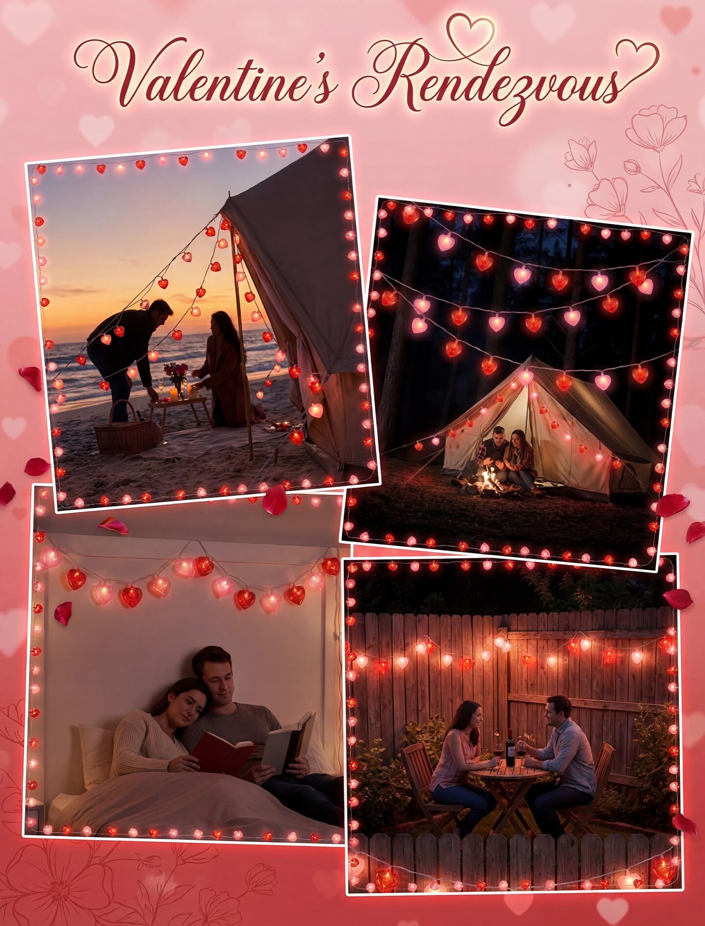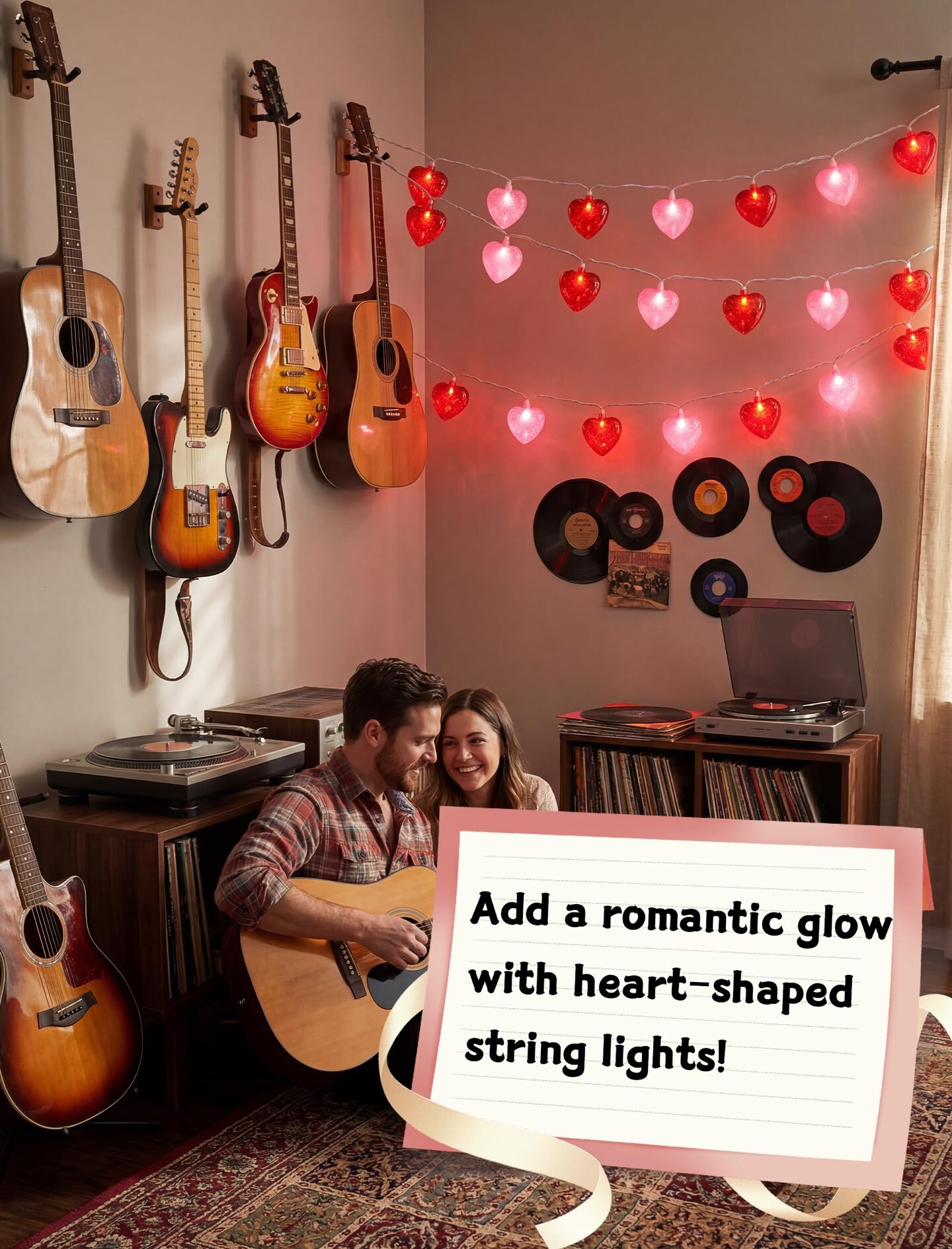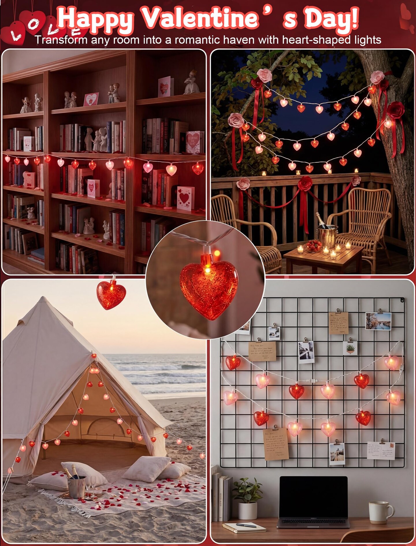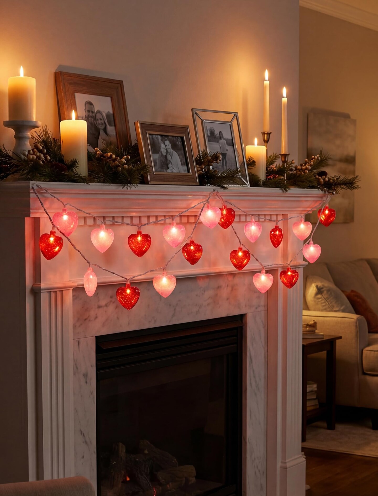 8.5 Ft Heart String Lights, Valentines Day Decorations Lights with 10 LED Glitter Red Pink Heart Lights, Plug in Fairy String Lights for Wedding Anniversary Party Valentine's Day