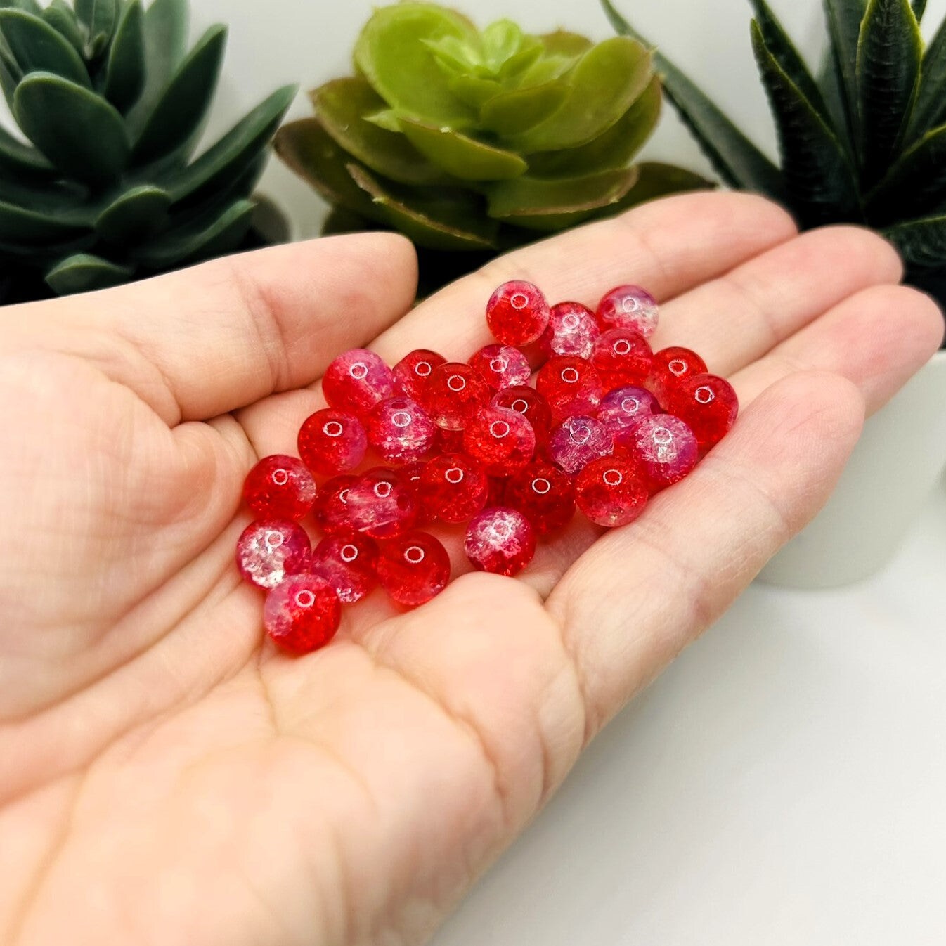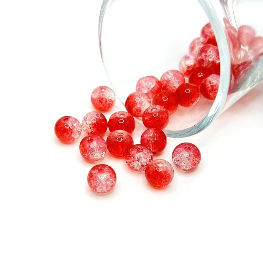 8.5m Red and Clear Crackle Glass Beads