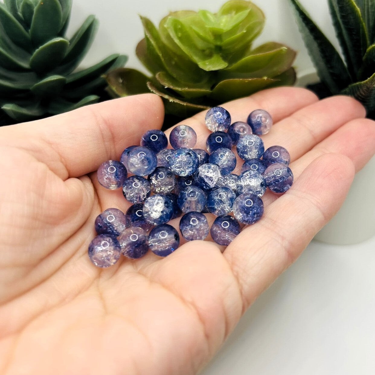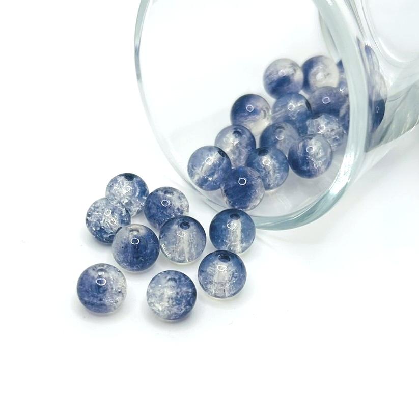 8.5mm Blue and Clear Crackle Glass Beads