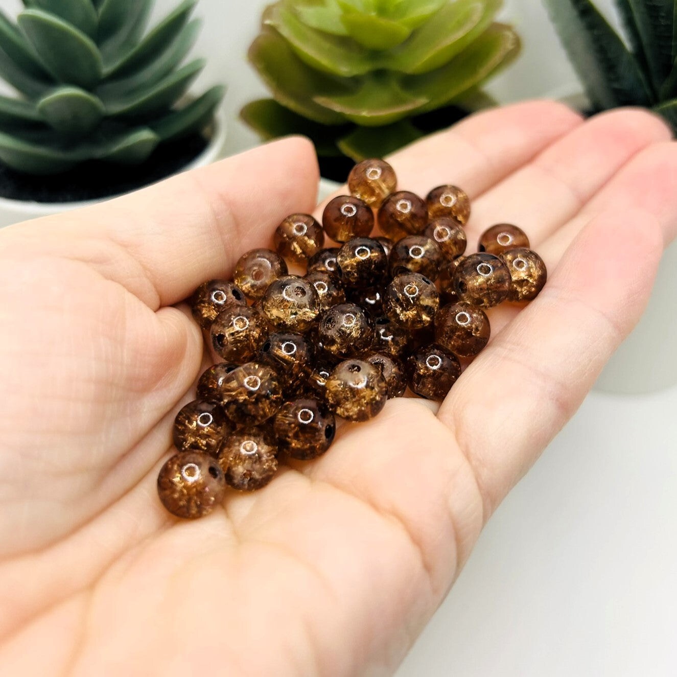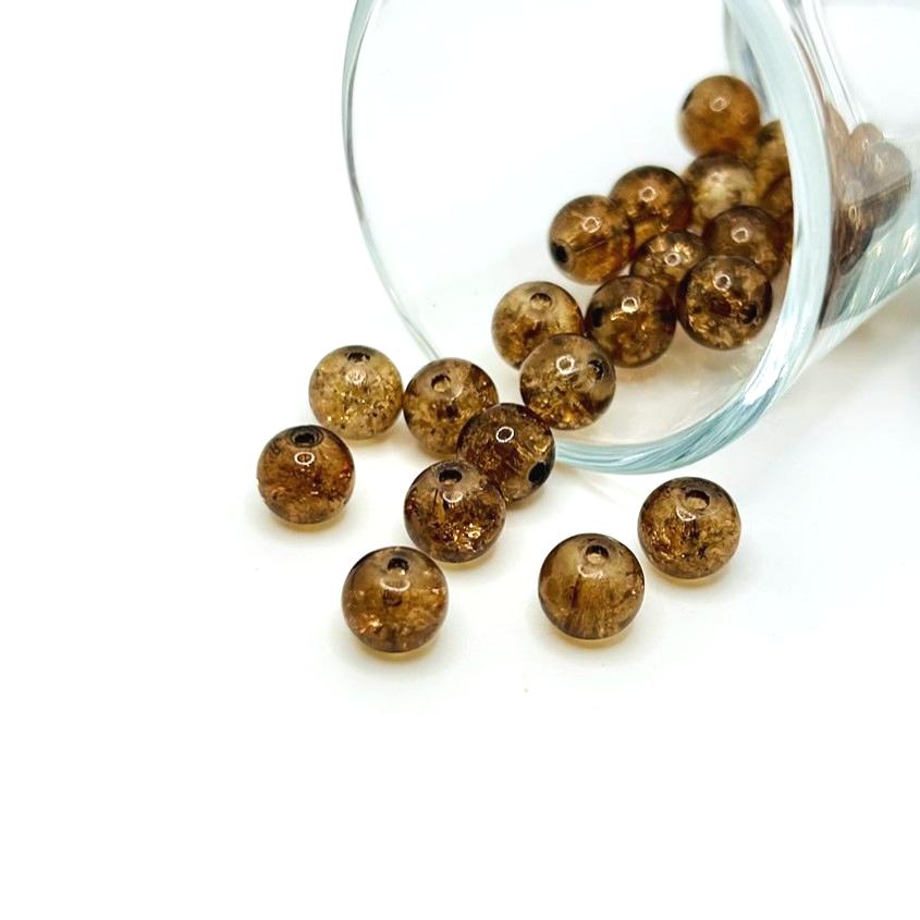 8.5mm Brown and Clear Crackle Glass Beads