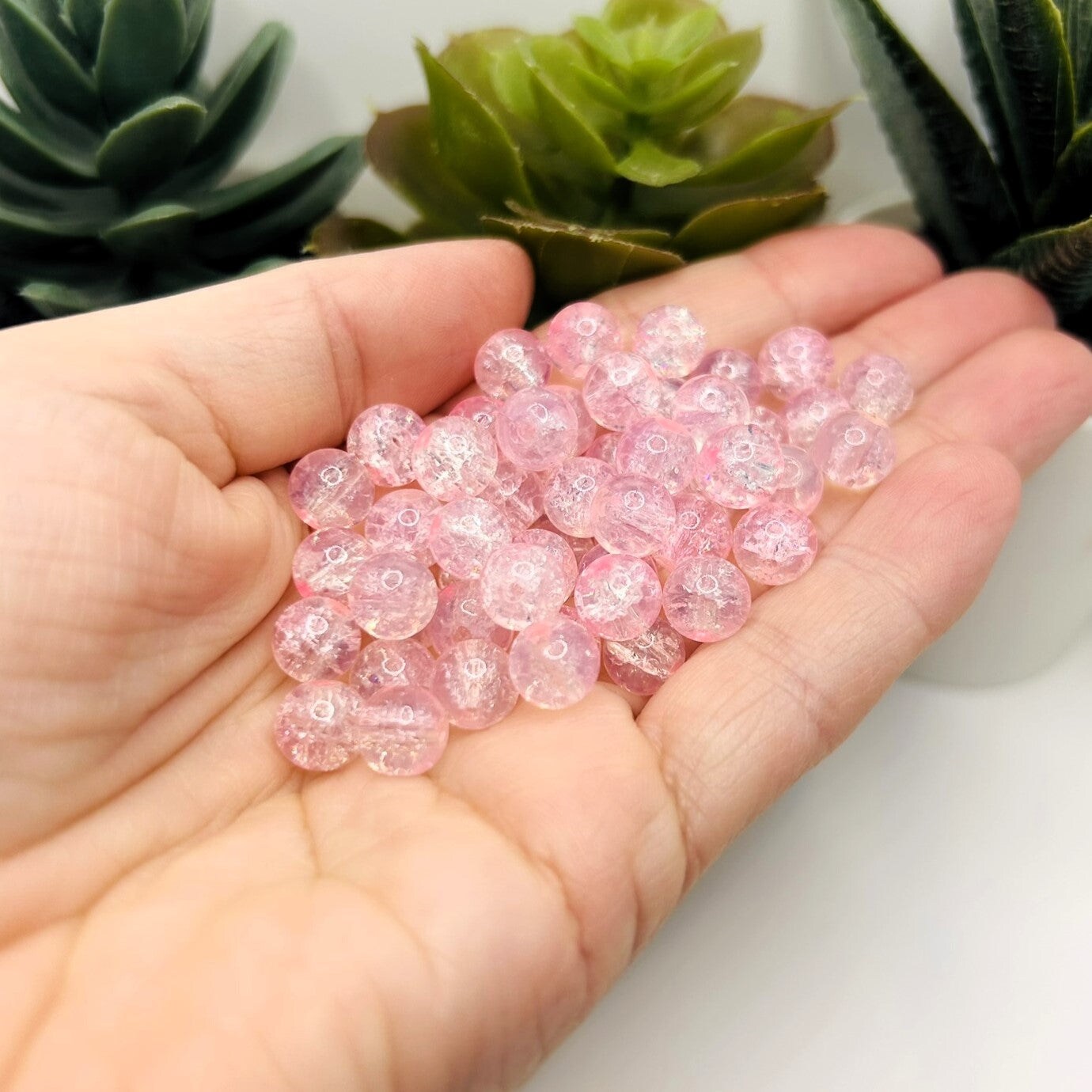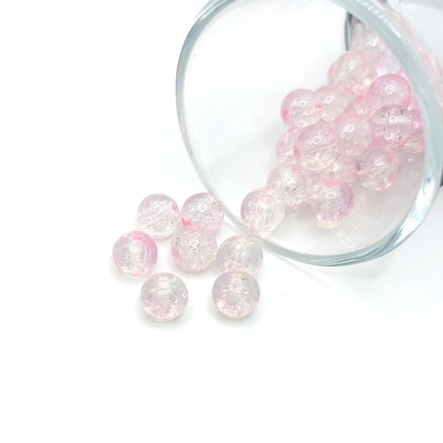 8.5mm Pink and Clear Crackle Glass Beads