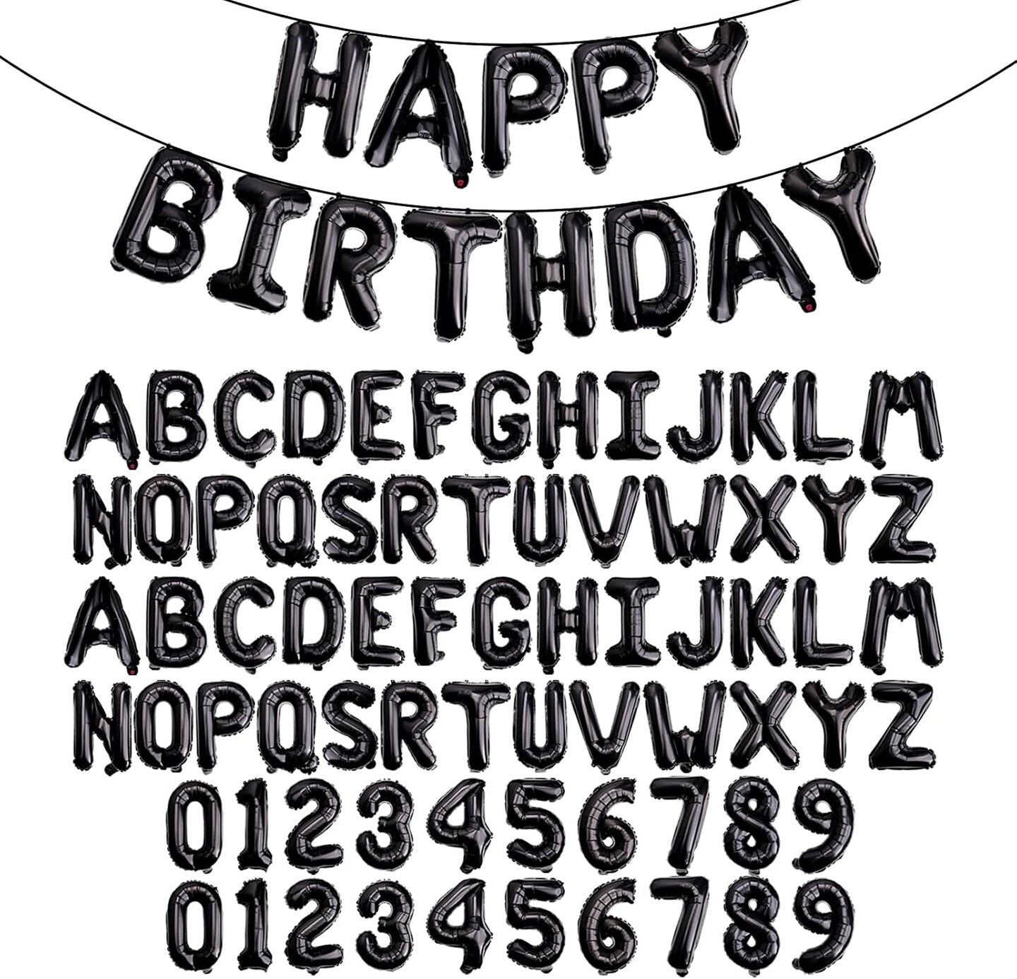 85PCS 16" Black Foil Letter & Number Balloons – Happy Birthday, A-Z & 0-9, Mylar Aluminum Hanging Alphabet for Birthday, Graduation, New Year & Party Decorations (Black)