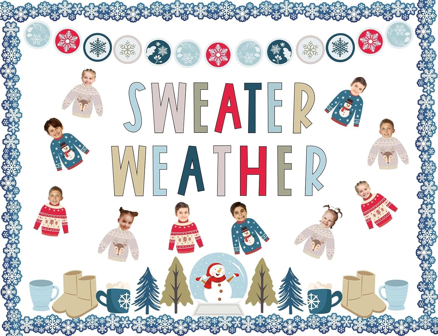 85Pcs Winter Bulletin Board Decoration Kit Xmas Tree Snowmen