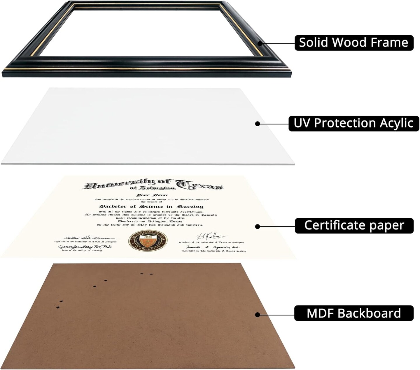 8.5x11 Certificate Diploma Frame,Solid Wood & UV Protection Acrylic,Black Finish with Gold Trim,2 Pack