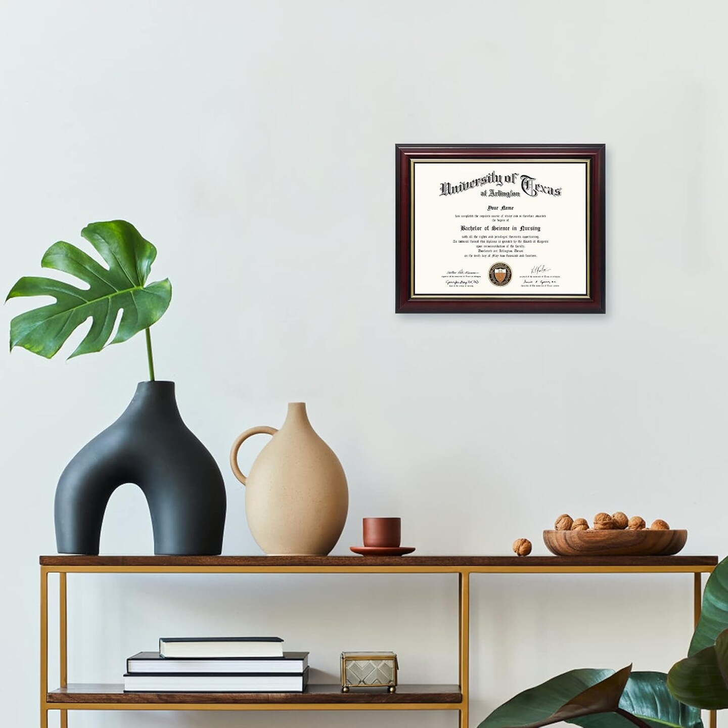 8.5x11 Certificate Diploma Frame,Solid Wood & UV Protection Acrylic,Cherry Finish with Gold Trim,2 Pack