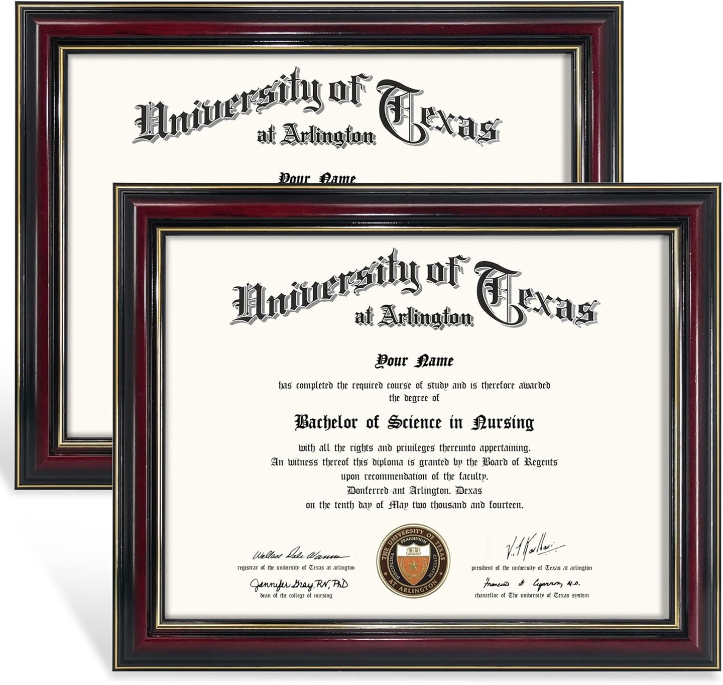 8.5x11 Certificate Diploma Frame,Solid Wood & UV Protection Acrylic,Glossy Cherry Finish with Gold Trim,2 Pack