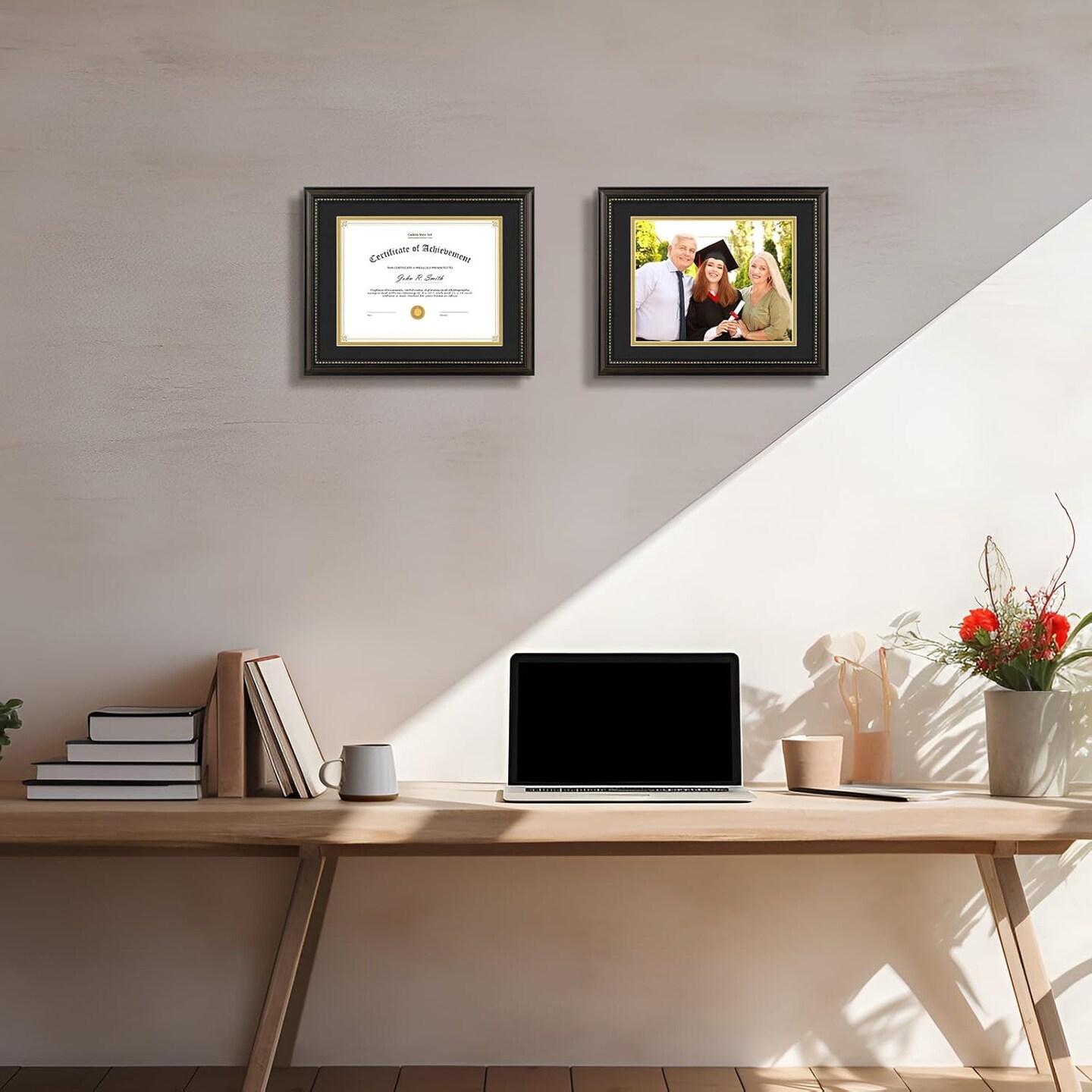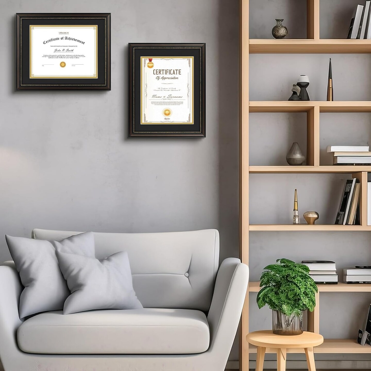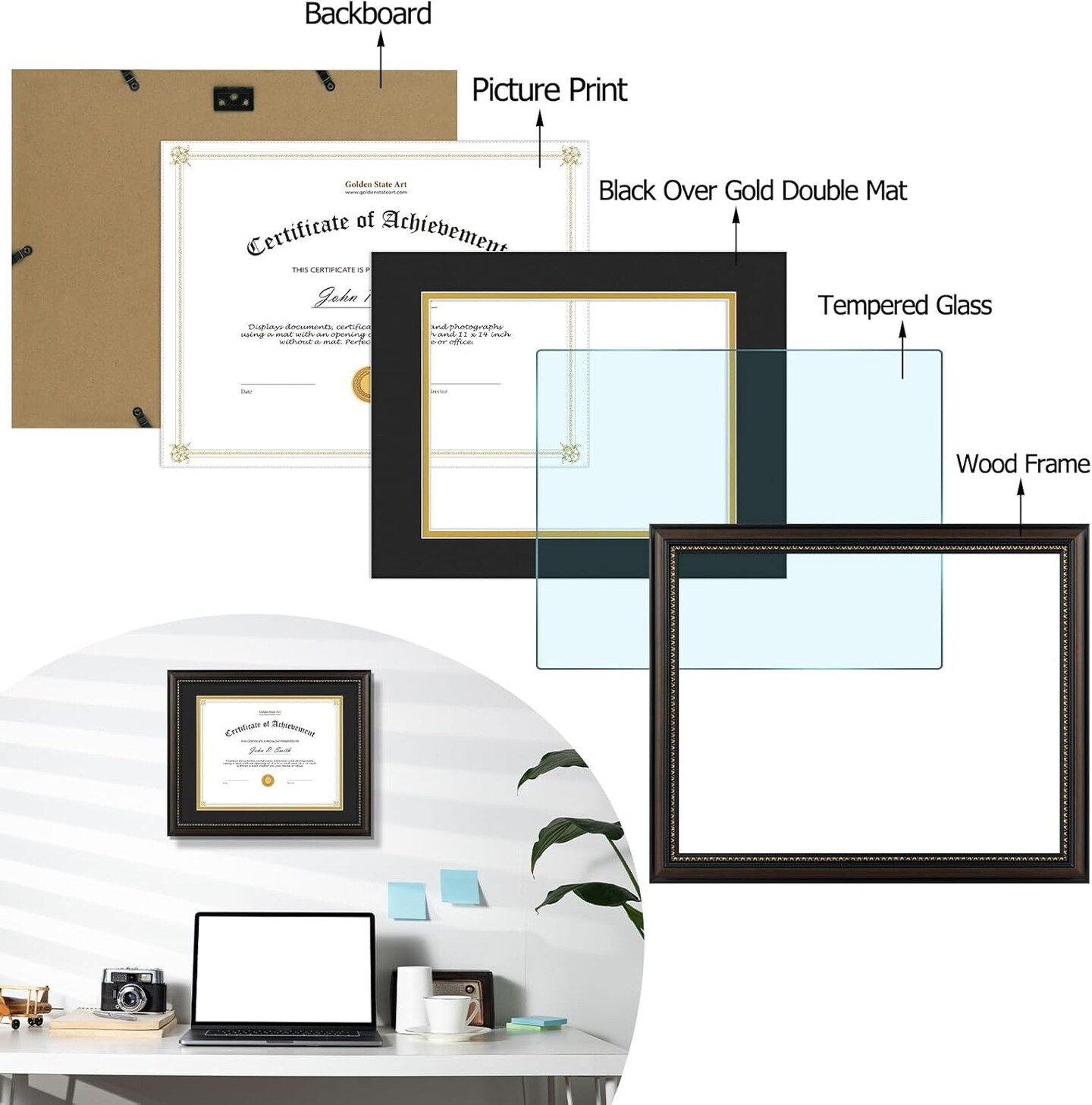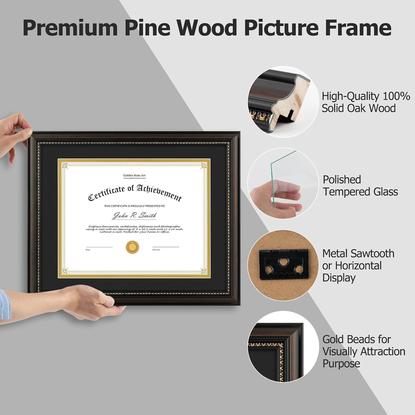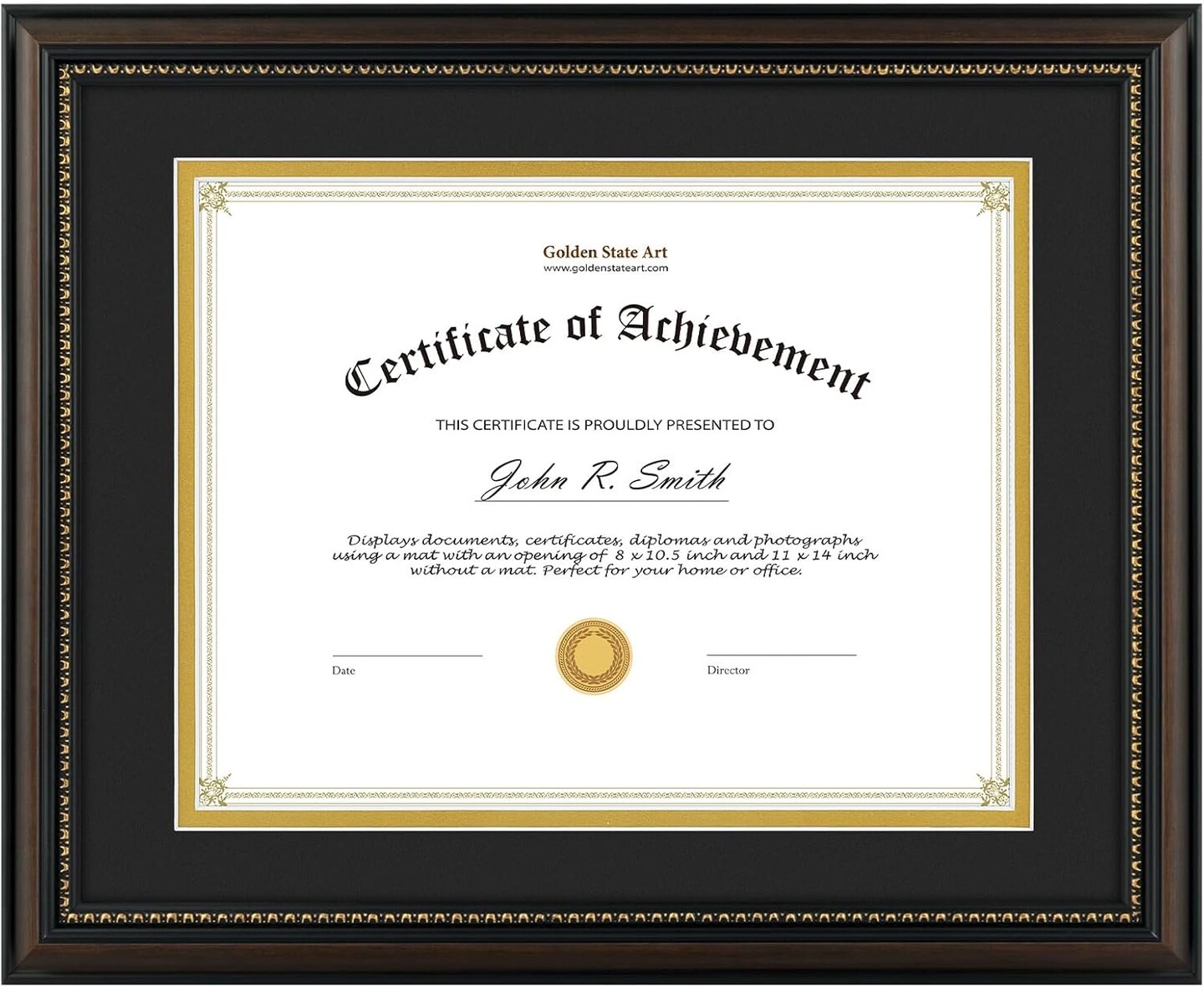 8.5X11 Diploma Frame, Solid Wood Brown with Gold Trim Certificate Frame, 8.5X11 Inch or 11X14 Diploma Without Mat, Real Glass Front with Black Over Gold Double Mat -1 Pack