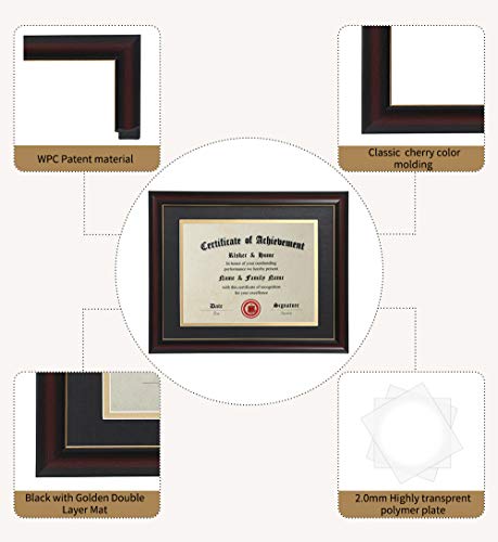 8.5x11 Diploma Frames with Mat,Classic Cherry Wood,8.5x11 Inch With Mat or 11x14 Inch Without Mat - For Document/Certificate Frame(Double Mat, Matte Black with Gold Rim)