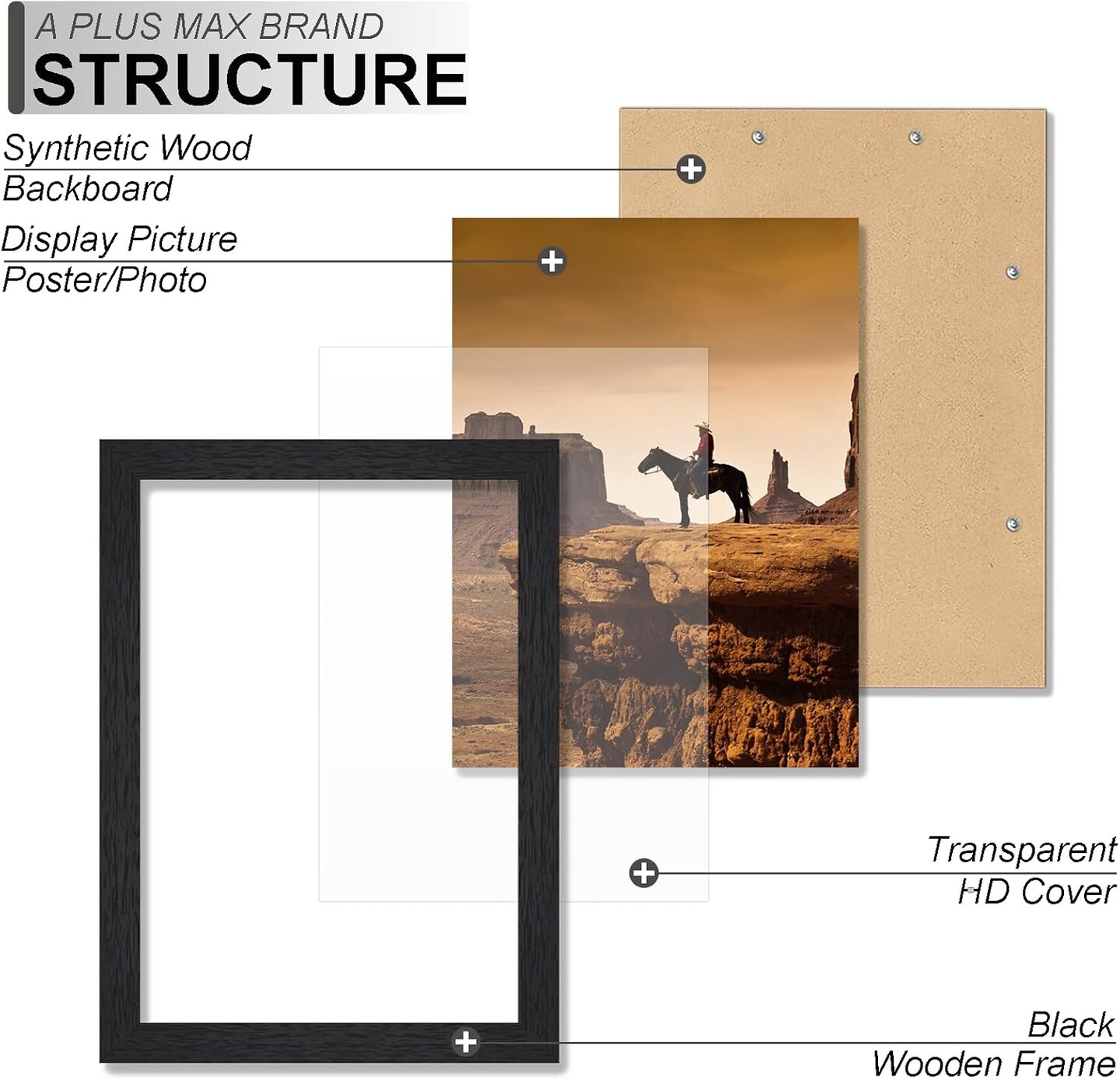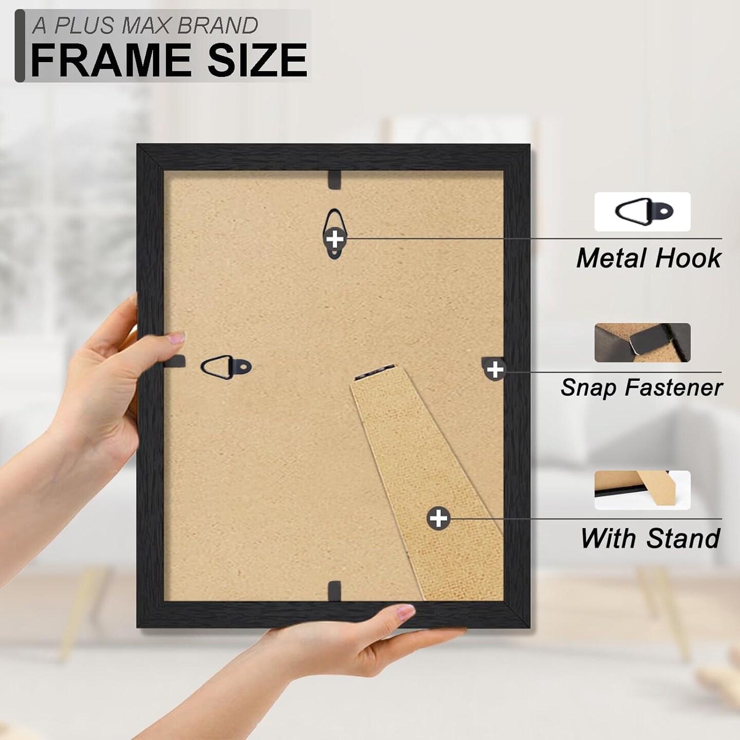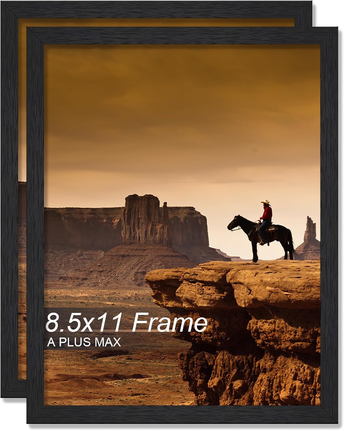 8.5x11 Picture Frame Set of 2, Black Engineered Wood Frame for 8.5 x 11 Inch Picture Poster Photo, Light Weight 8.5 by 11 Frame with Wood-grain for Wall