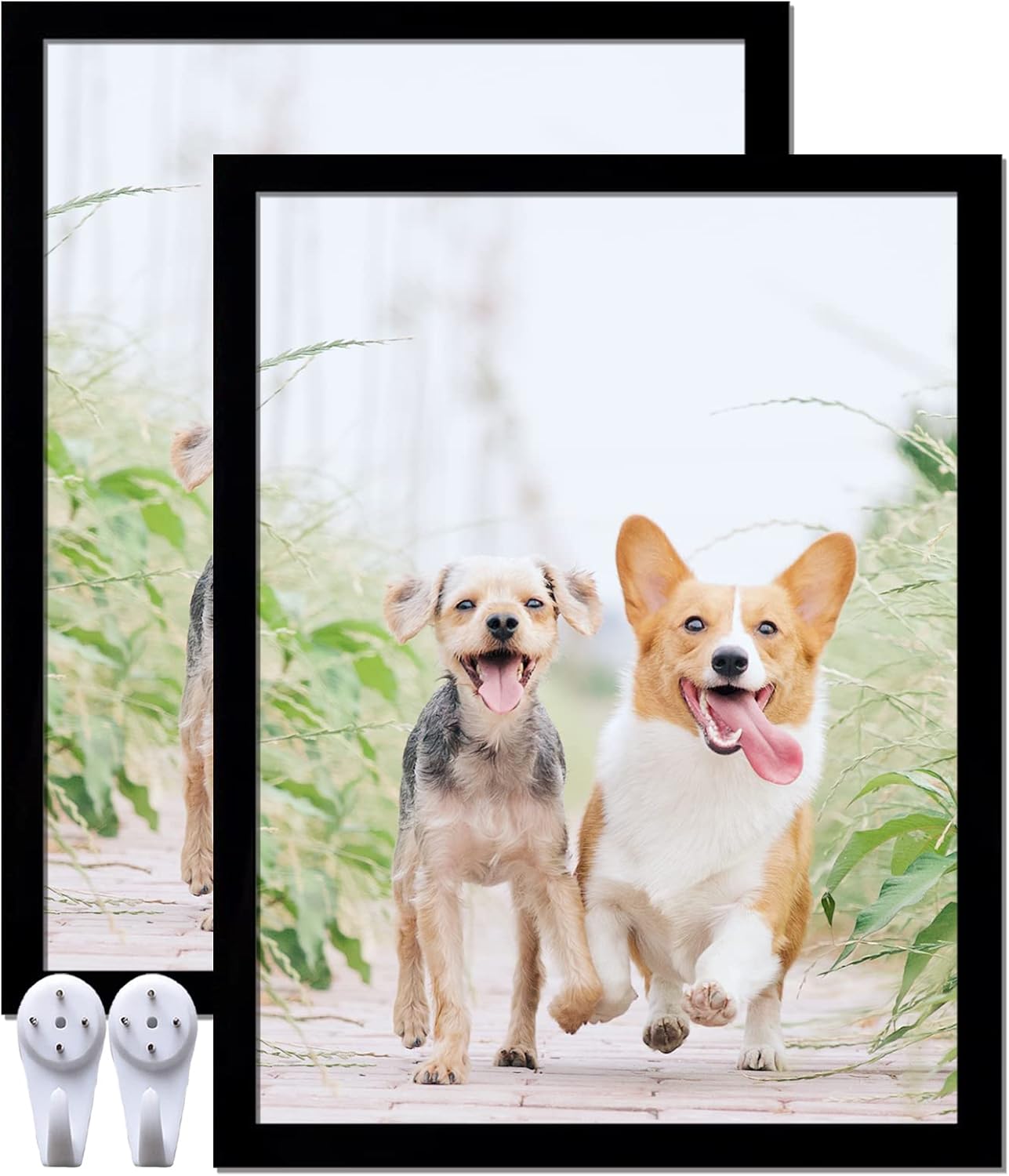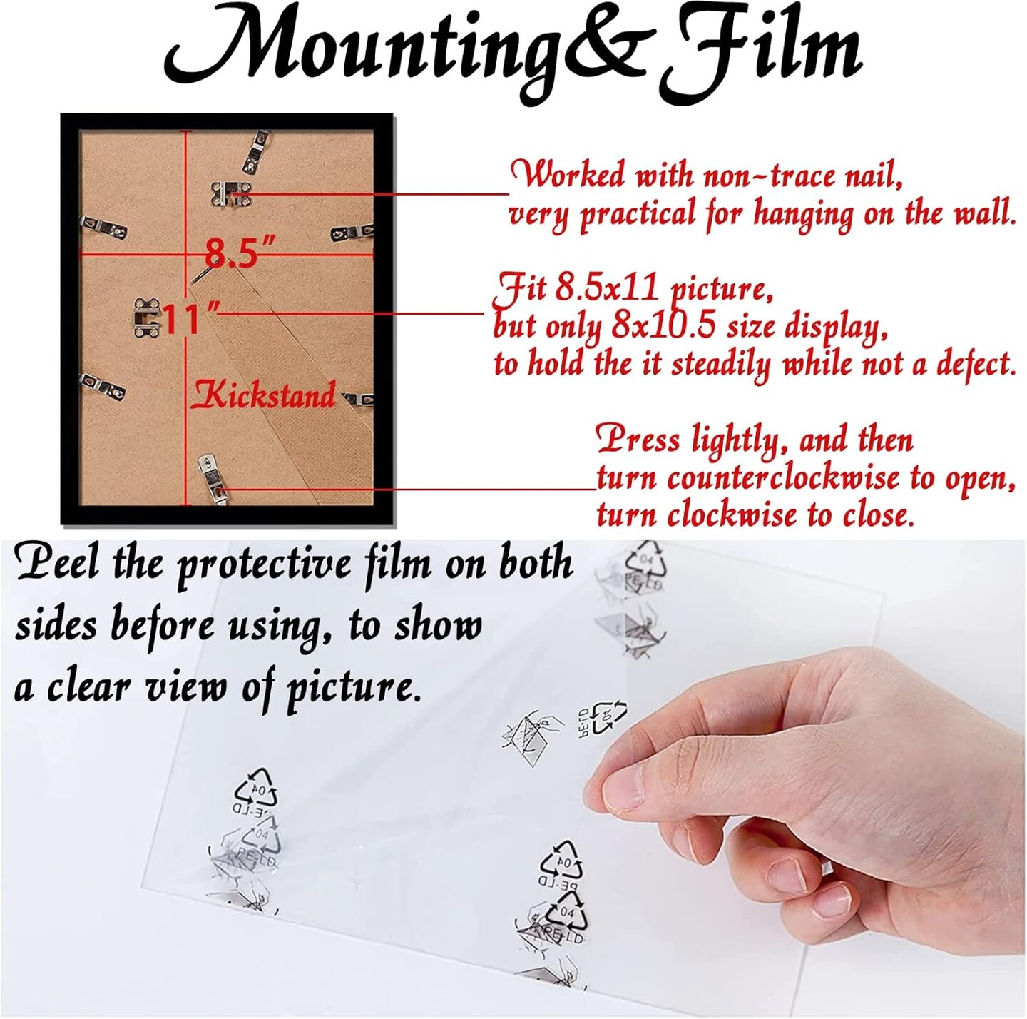 8.5x11 Picture Frame Set of 2, Black Photo Frames High Transparent Wall Gallery Desktop Horizontal Vertical for Canvas Collage Photo Poster Certificate
