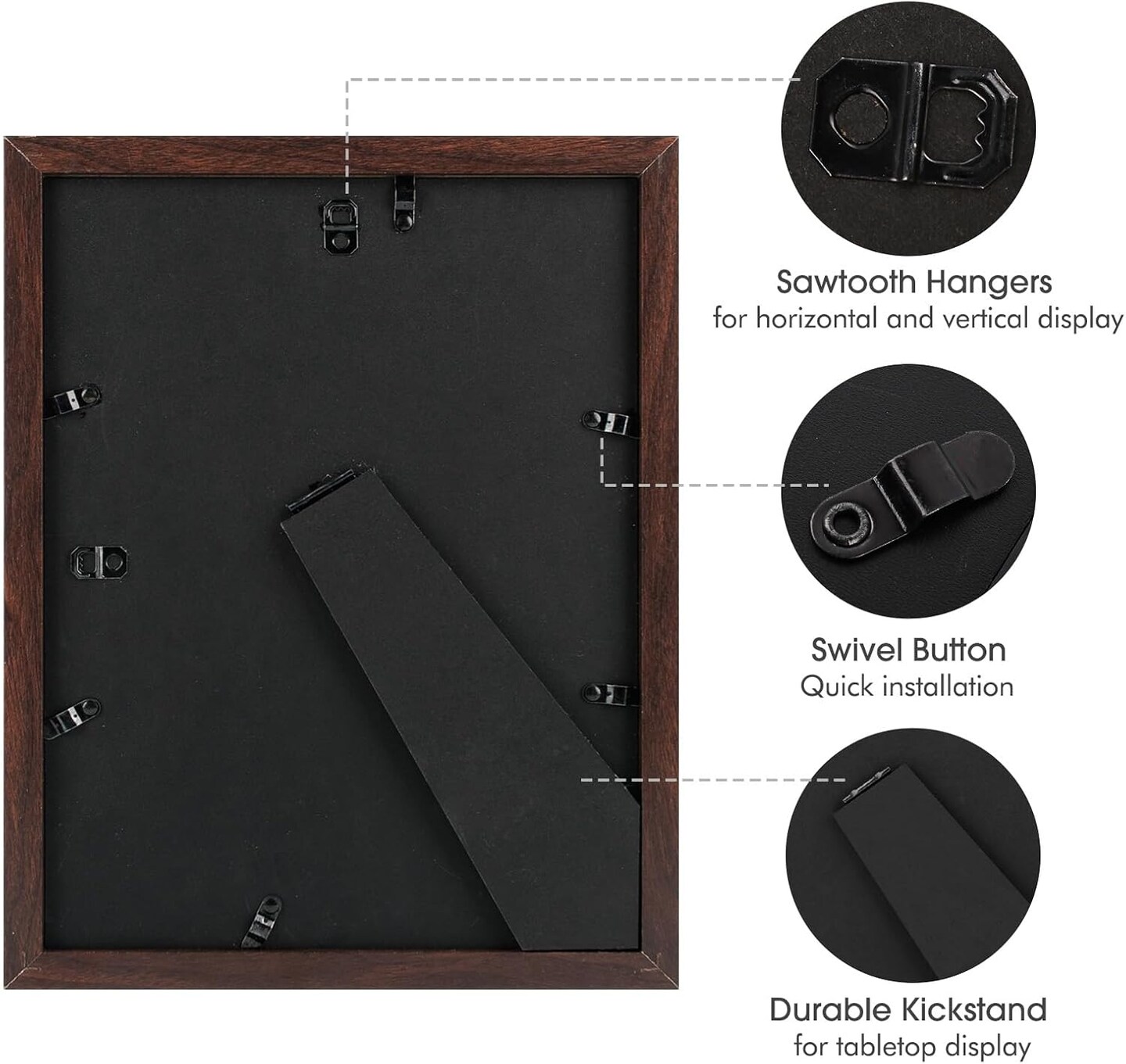 8.5x11 Picture Frame with Glass, Tabletop & Wall Horizontal or Vertical Display, 8 1/2 x 11 Photo Frame for Diploma, Documents (Brown, 1-Pack)