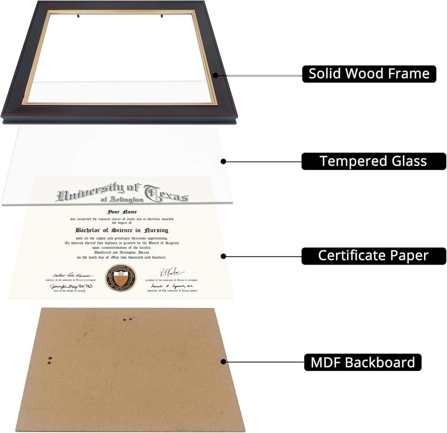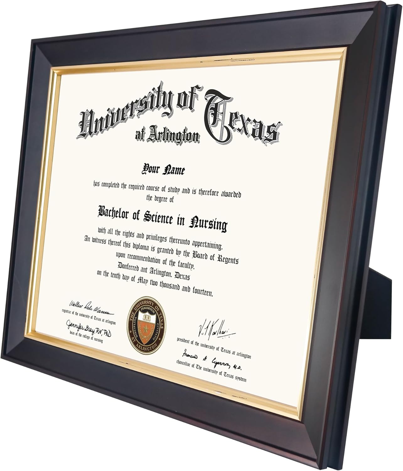 8.5x11 Wood Diploma Frame with Tempered Glass Deep Brown Finish with Gold Trim