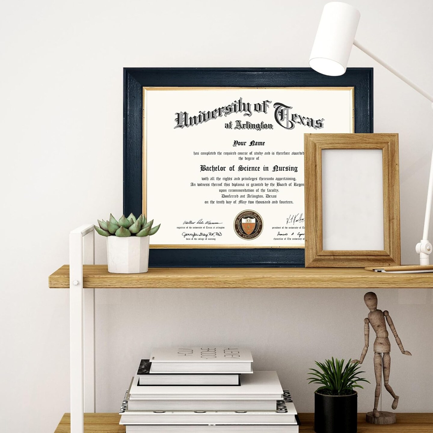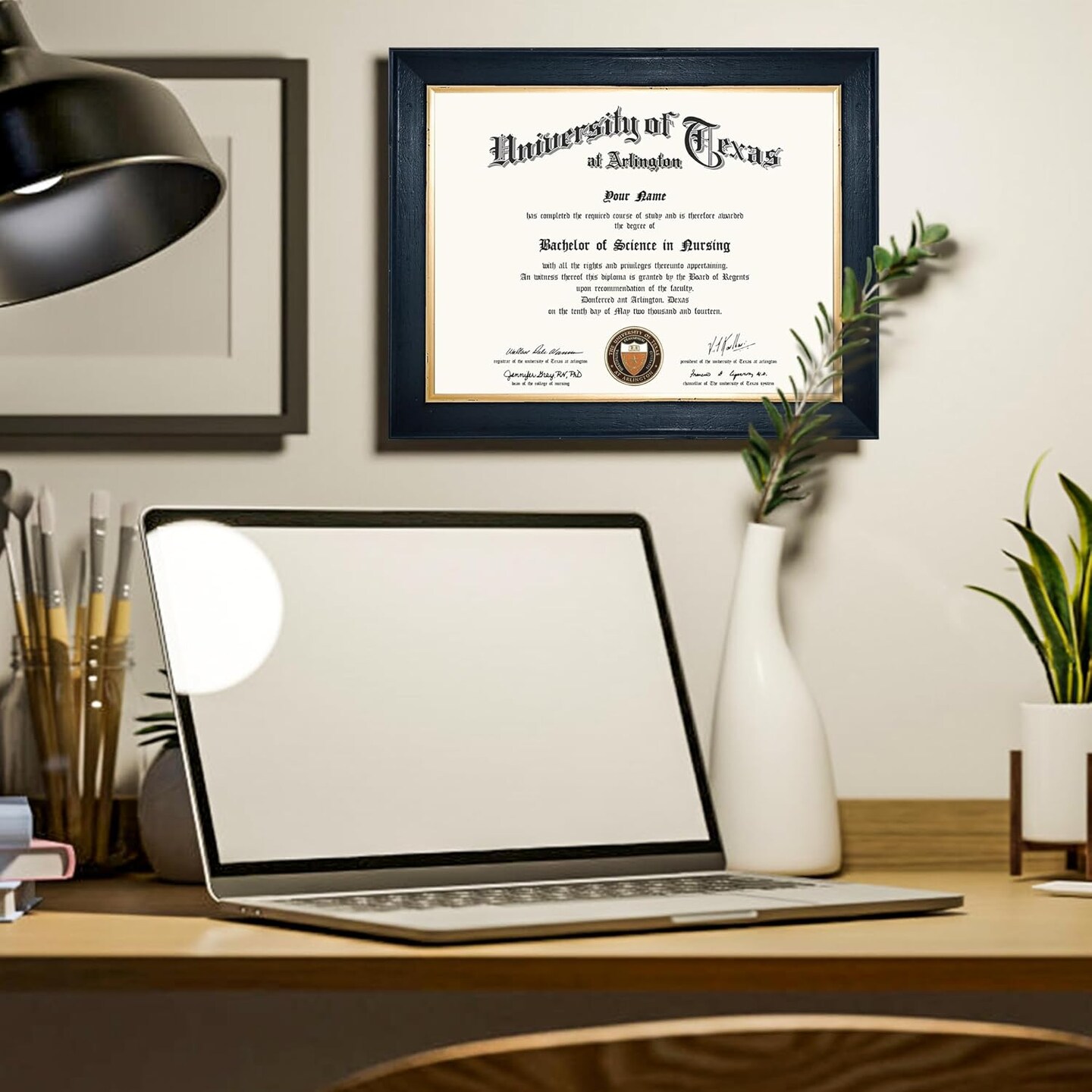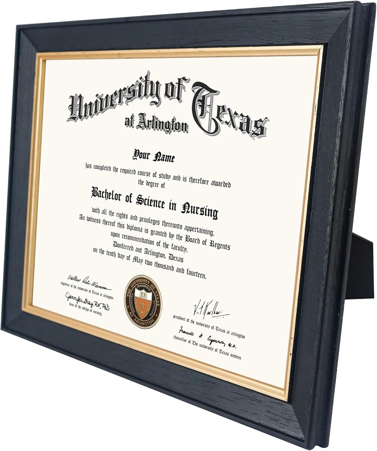 8.5x11 Wood Diploma Frame with Tempered Glass Rustic Black Finish with Gold Trim