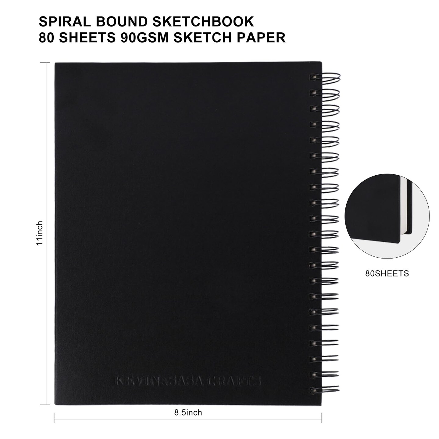 8.5x11inches Hardbound Sketch Book, Spiral Bound Sketch Pad, 80-Sheets 90gsm Inner Paper, Acid Free Drawing Art Paper, Prefect Works with Kids and Adults