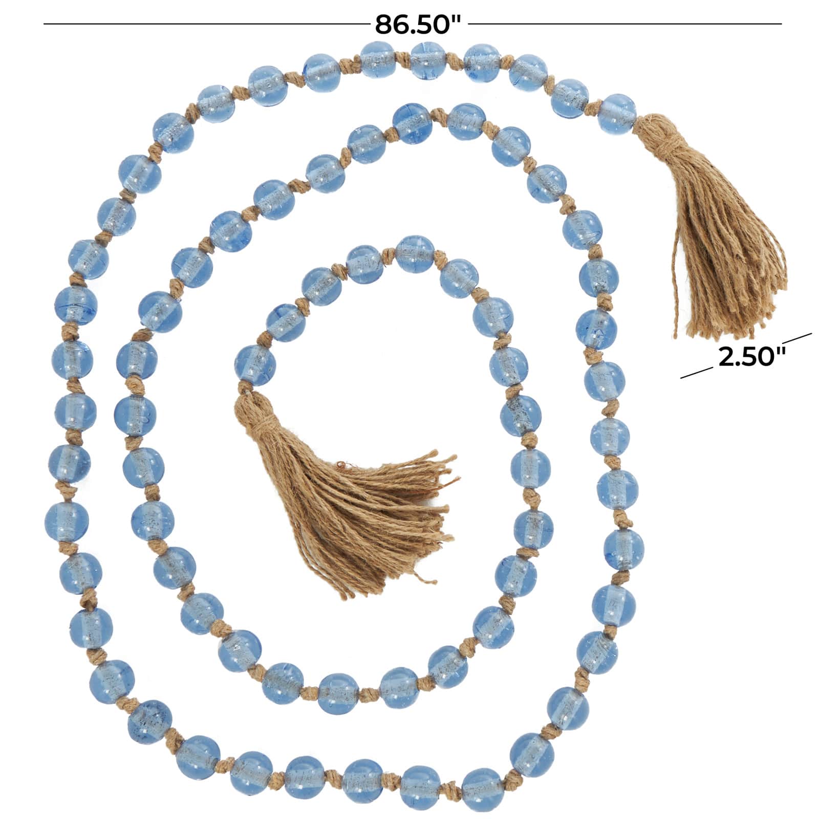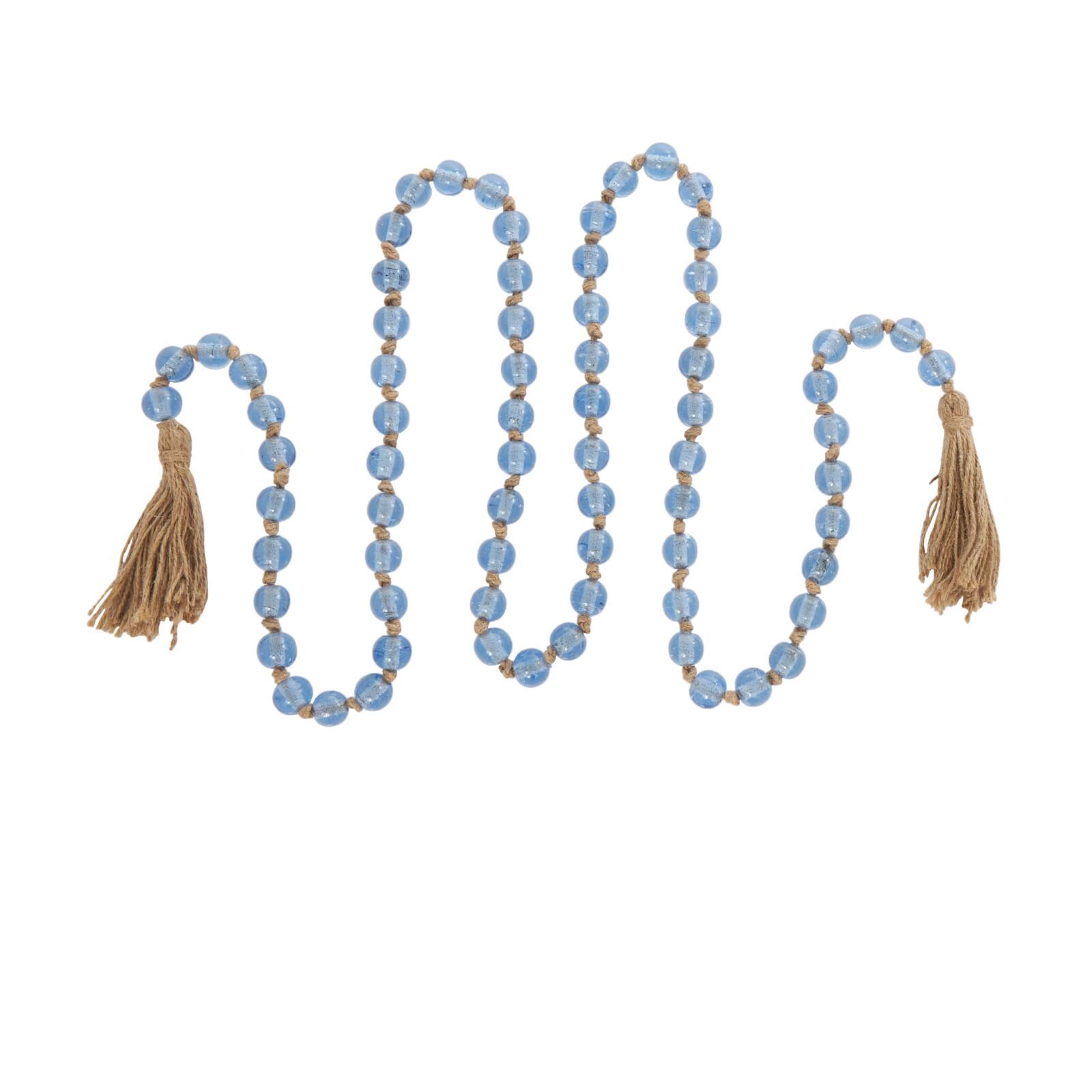86.5" Handmade Round Glass Beaded Garland with Jute Tassel