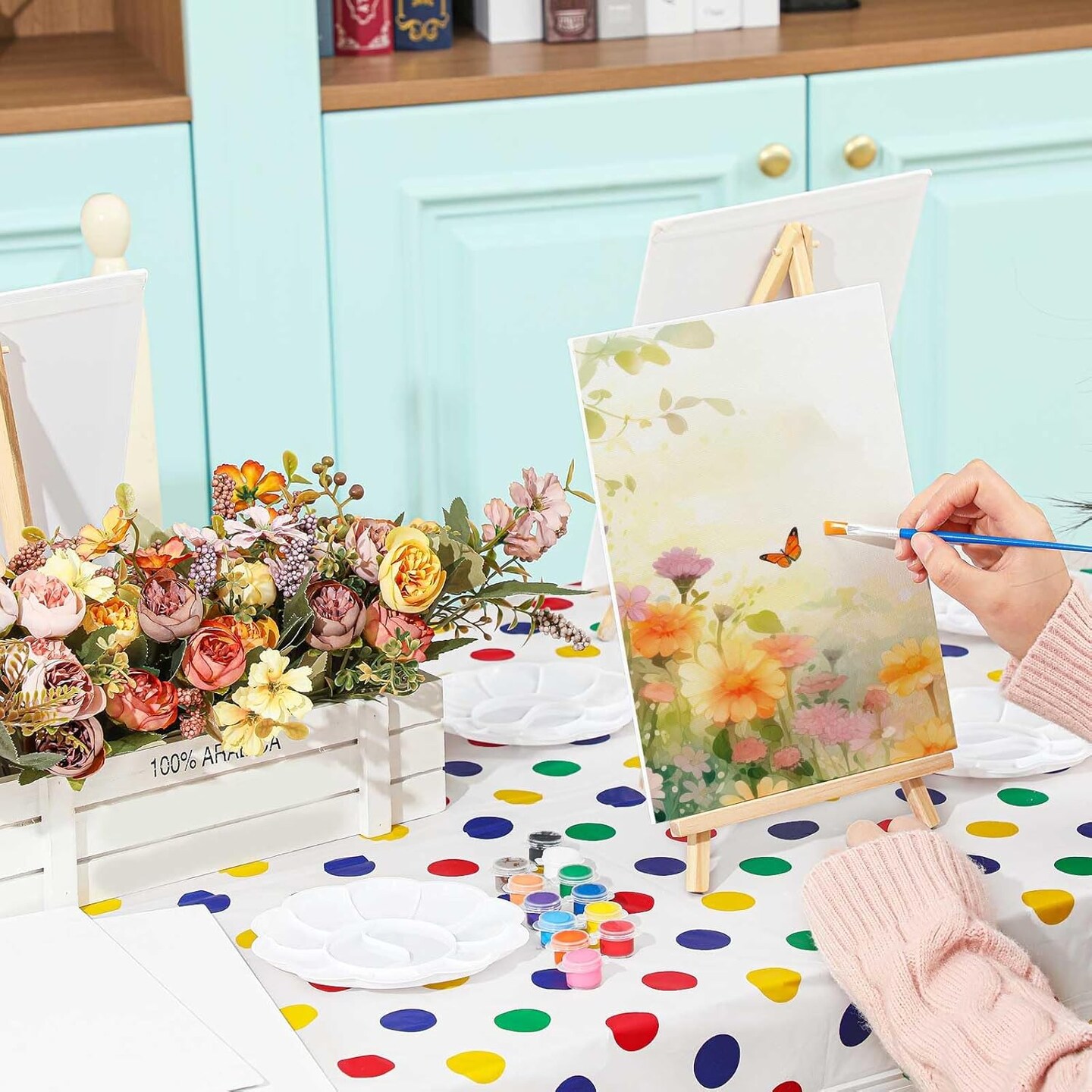 86-Piece Mini Canvas Painting Kit with Easels – 8"x10" Small Canvas DIY Art Set for Parties, Includes Paints, Brushes, Aprons & Large Tablecloth – Perfect for Adults & Kids, Birthday, Holiday, or Family Painting Activities (multicolored)