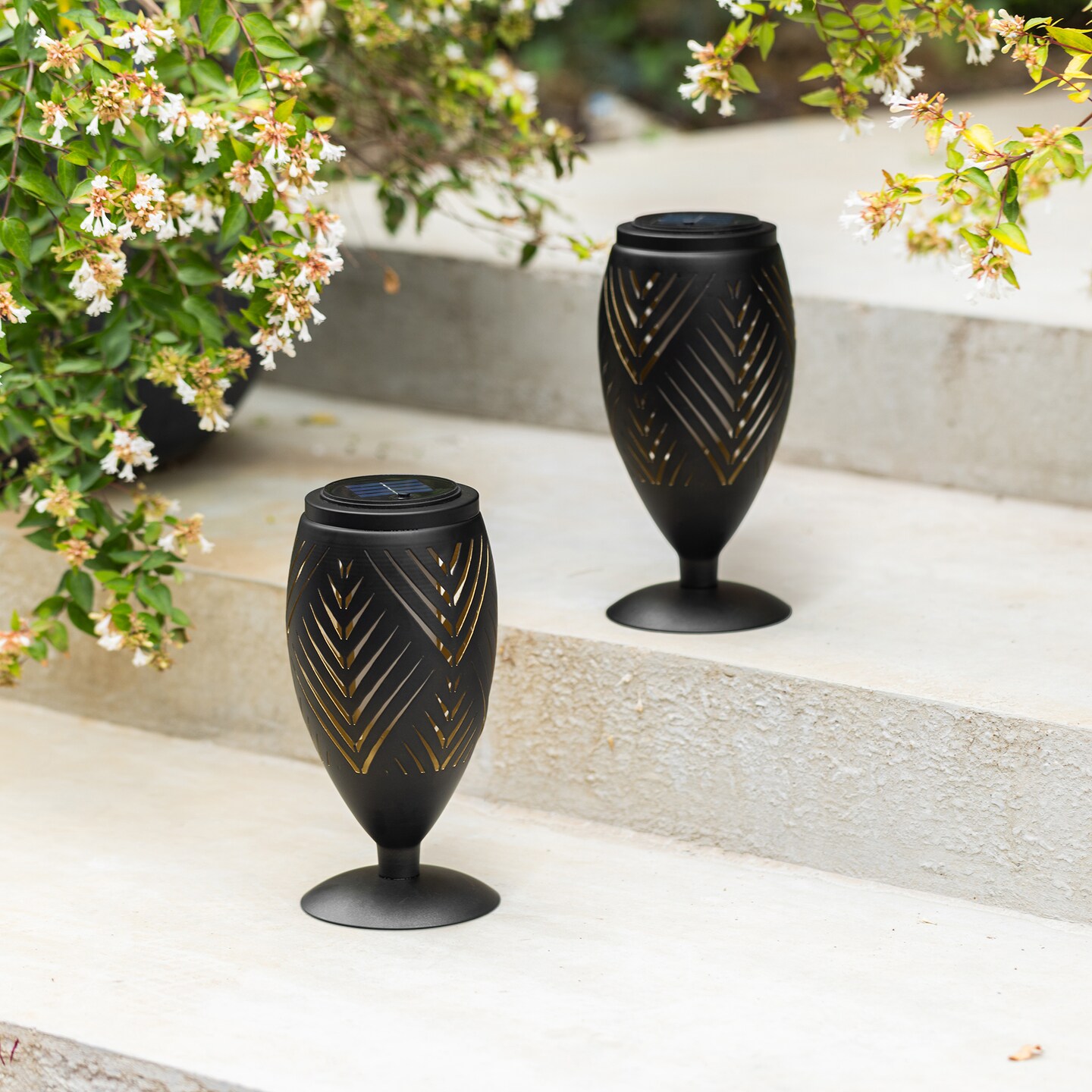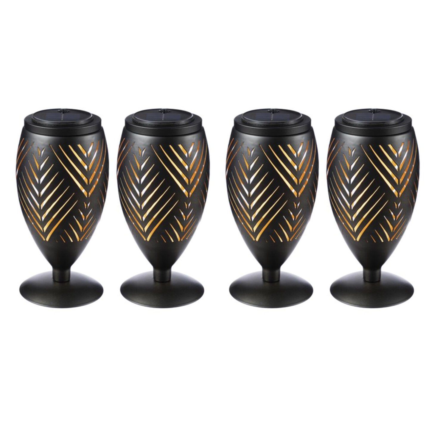 8.75"H Set of 4 Black Metal Cutout Geometric Pattern Solar Powered Outdoor Lantern with LED Light