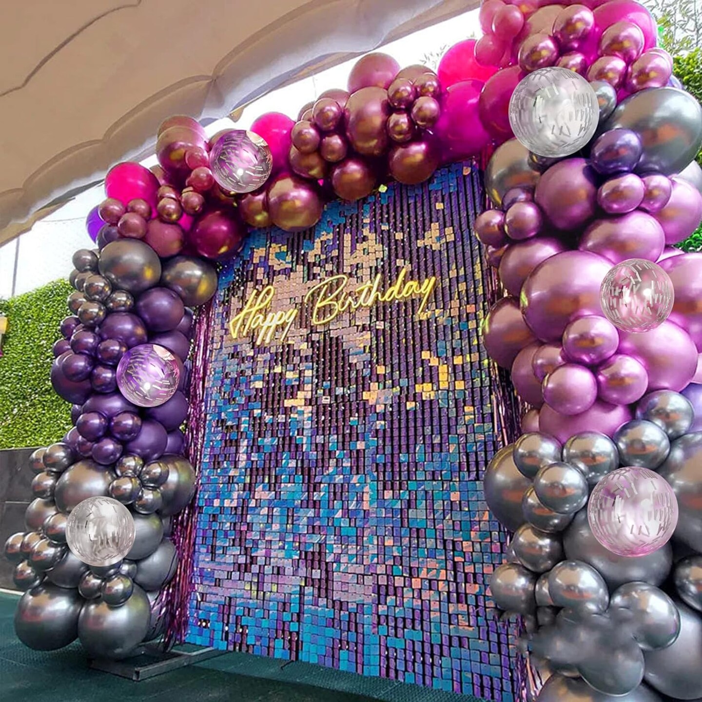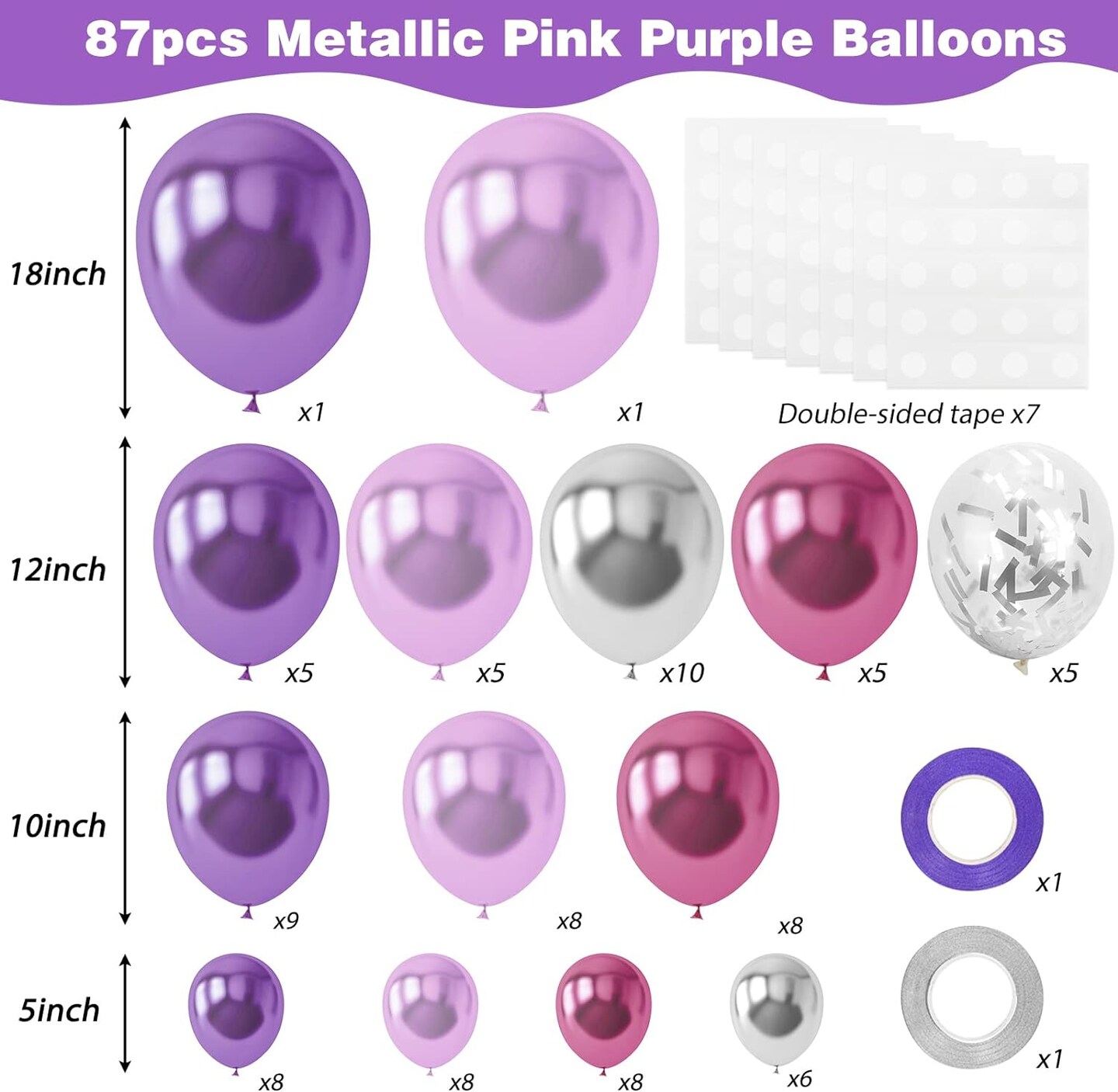 87pcs Metallic Pink Purple Balloon Garland Arch Kit, 18 12 10 5 Inch Pink Purple Red Silver Confetti Latex Party Balloons for Birthday Graduation Baby Shower Decoration