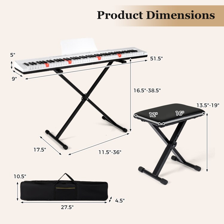 88-Key Keyboard Piano with Adjustable Stand, Recording Function and Carry Bag
