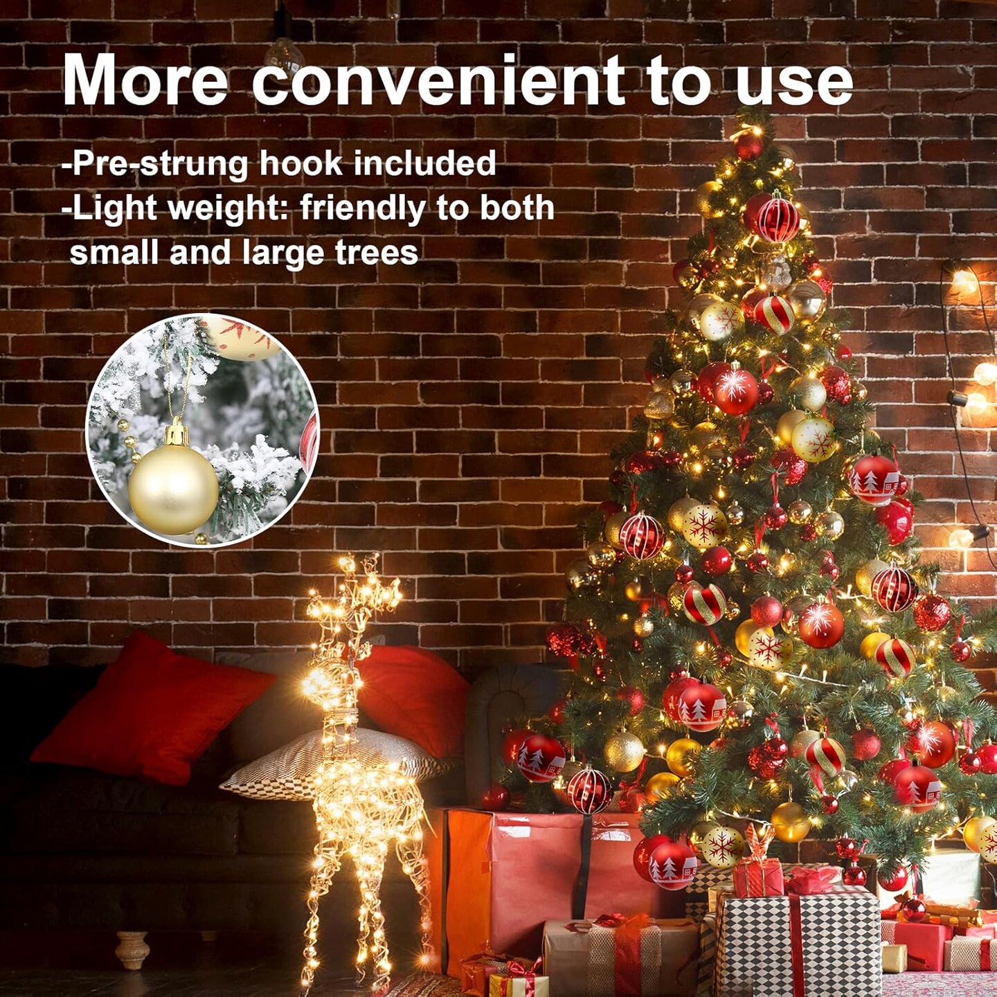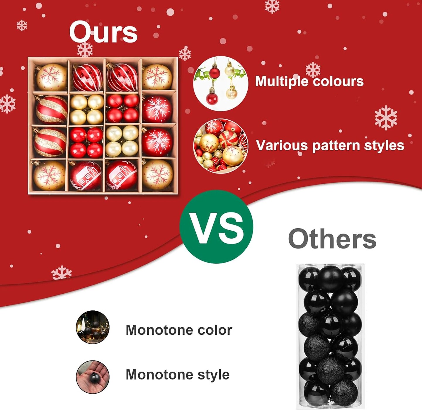 88Pcs Christmas Balls Ornaments for Xmas Christmas Tree - Red & Gold 2 Sizes Christmas Tree Ornaments Balls with Glitter, Shatterproof Christmas Tree Decorations for Holiday Wreath Garland