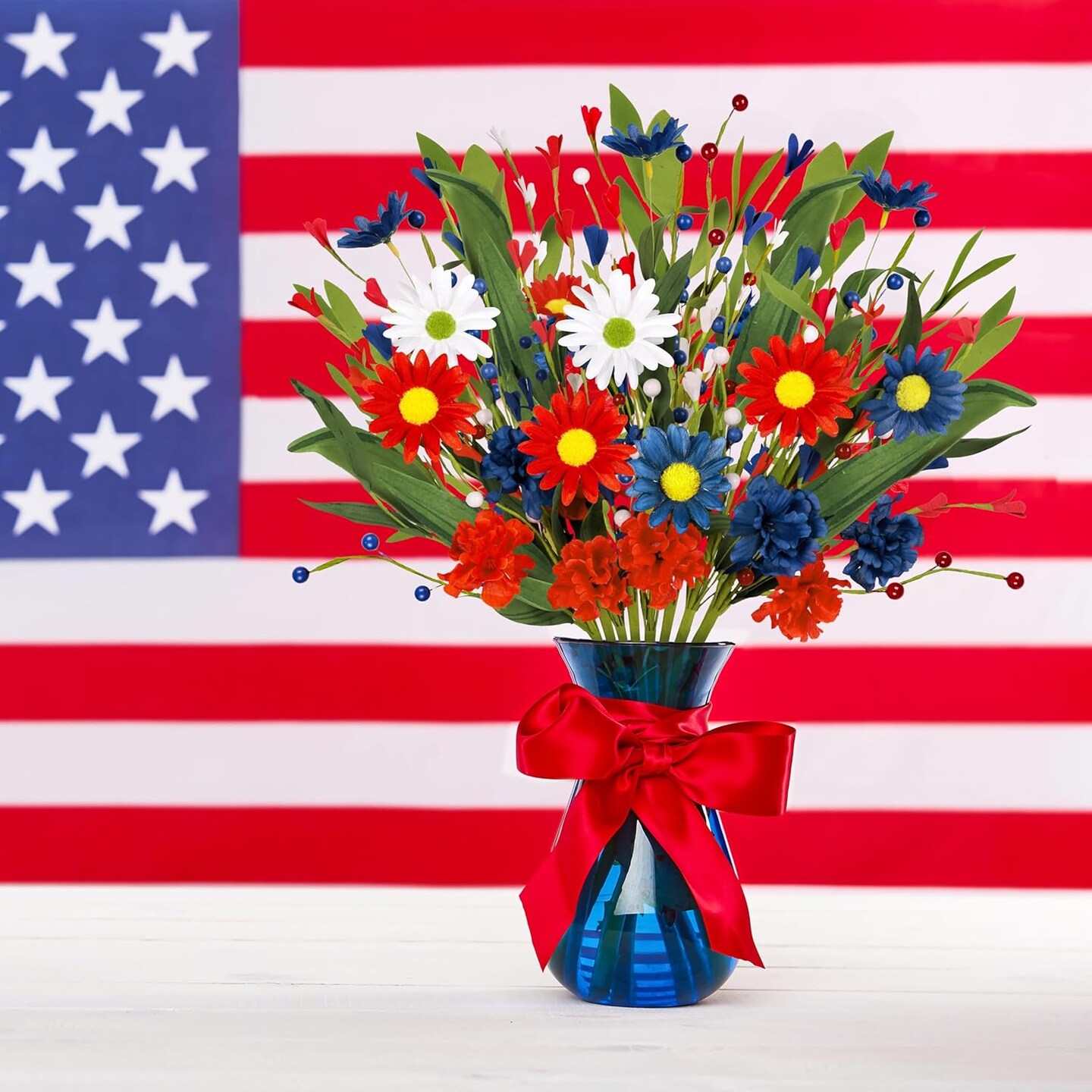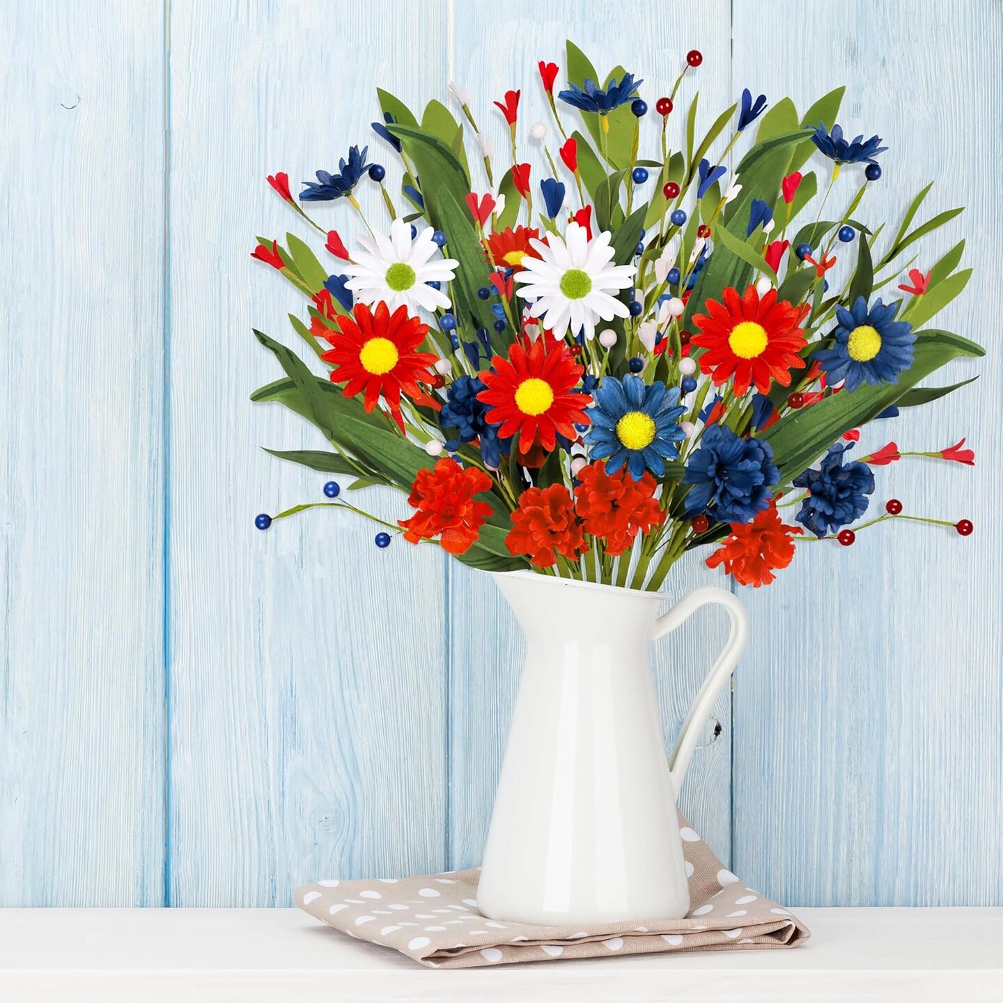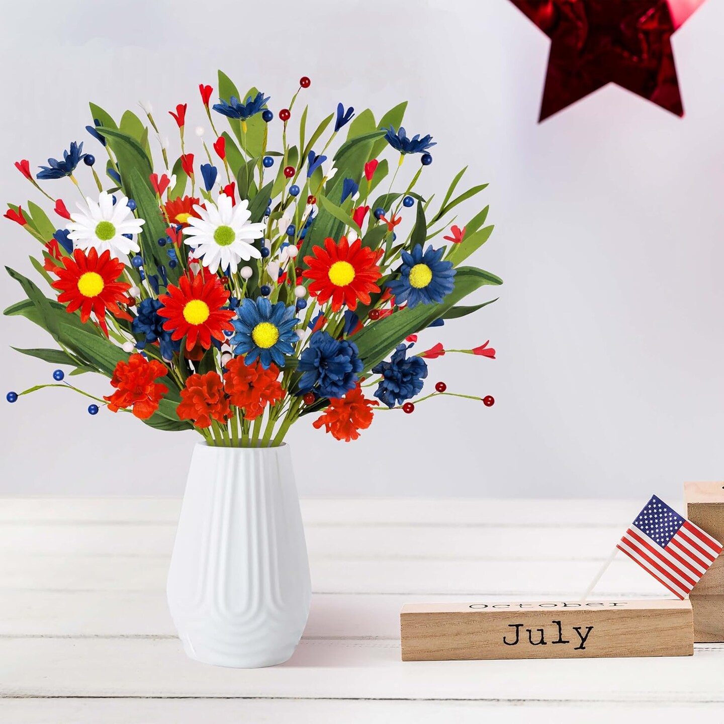 8-Bundle 4th of July Decorations – Red, White & Blue Artificial Silk Flowers for Patriotic Table Centerpieces, Vases, and Memorial Day Home Decor