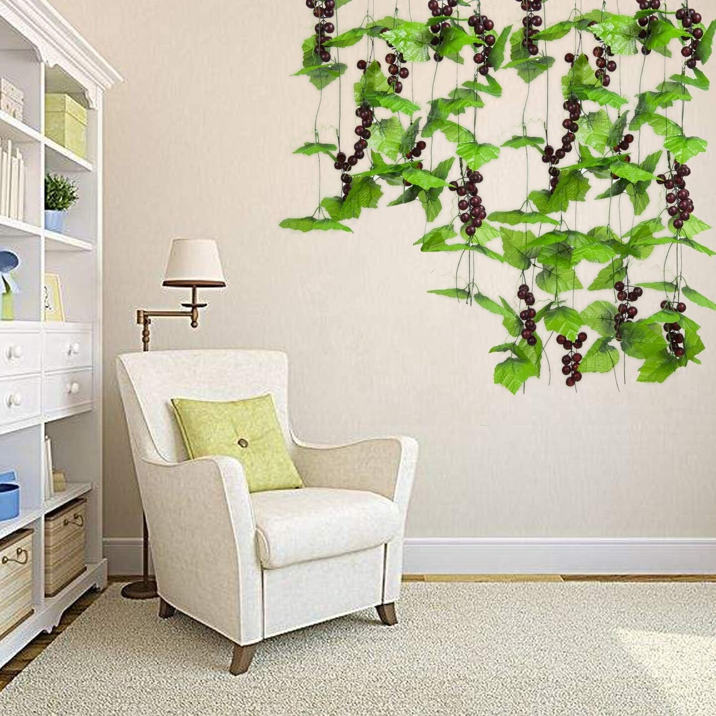 8FT 5pcs Artificial Greenery Chain Grapes Fake Vines Leaves Foliage Simulation