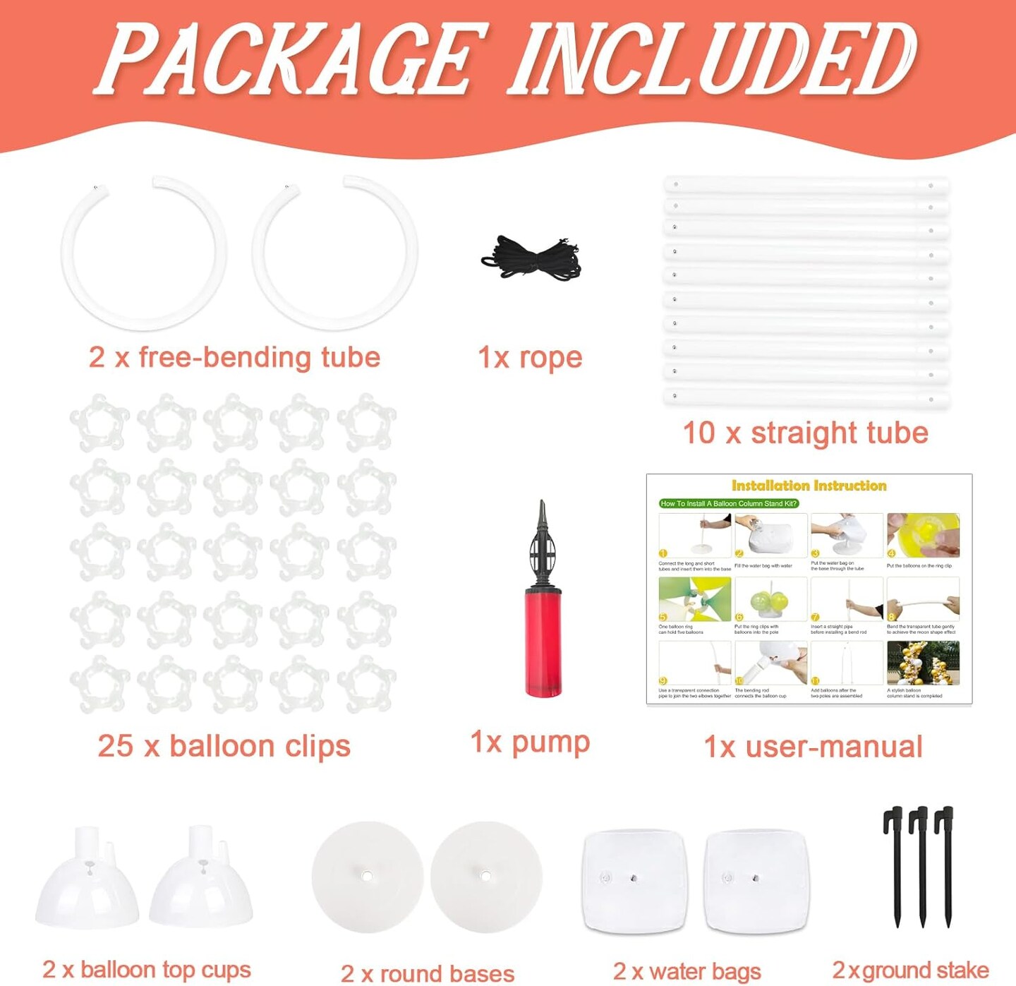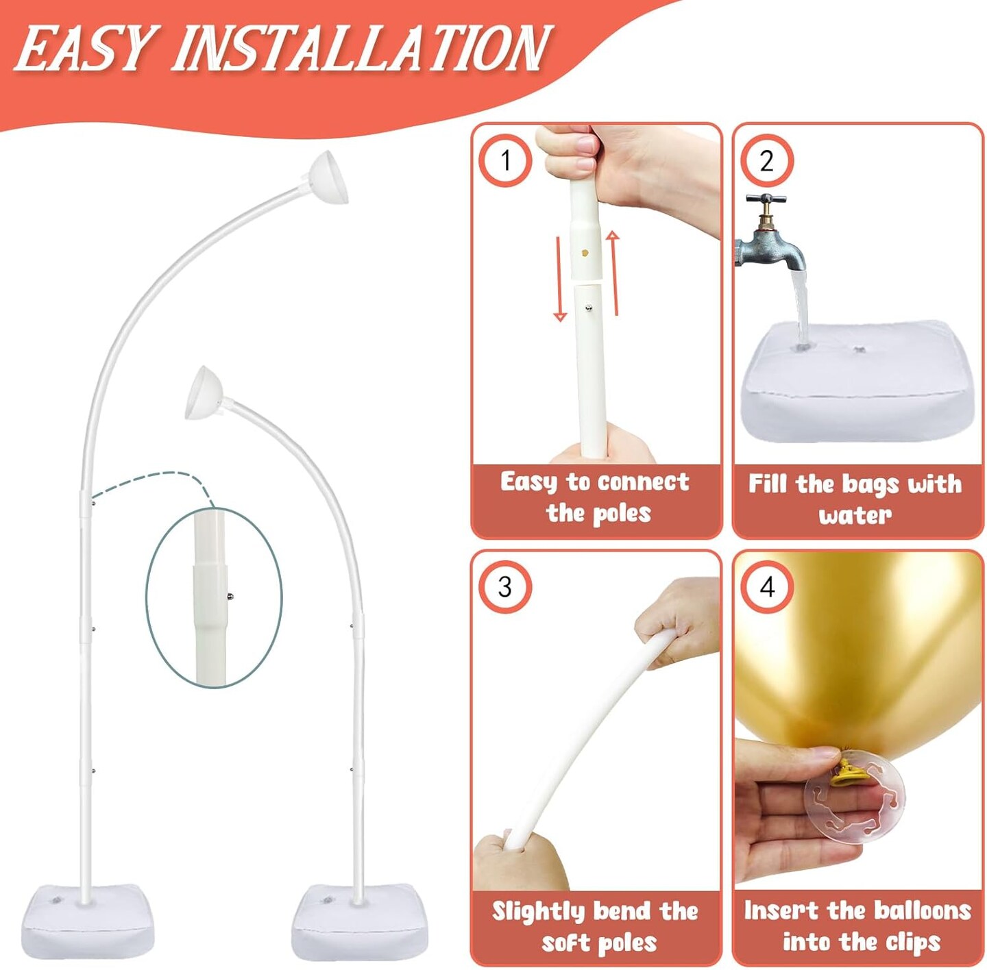 8FT & 6FT Balloon Arch Stand, Flexible Top Balloon Arch Kit, Half Arch Balloon Stand with Base for Floor, Balloon Column Kit for Wedding Birthday Baby Shower Graduation Party Decorations