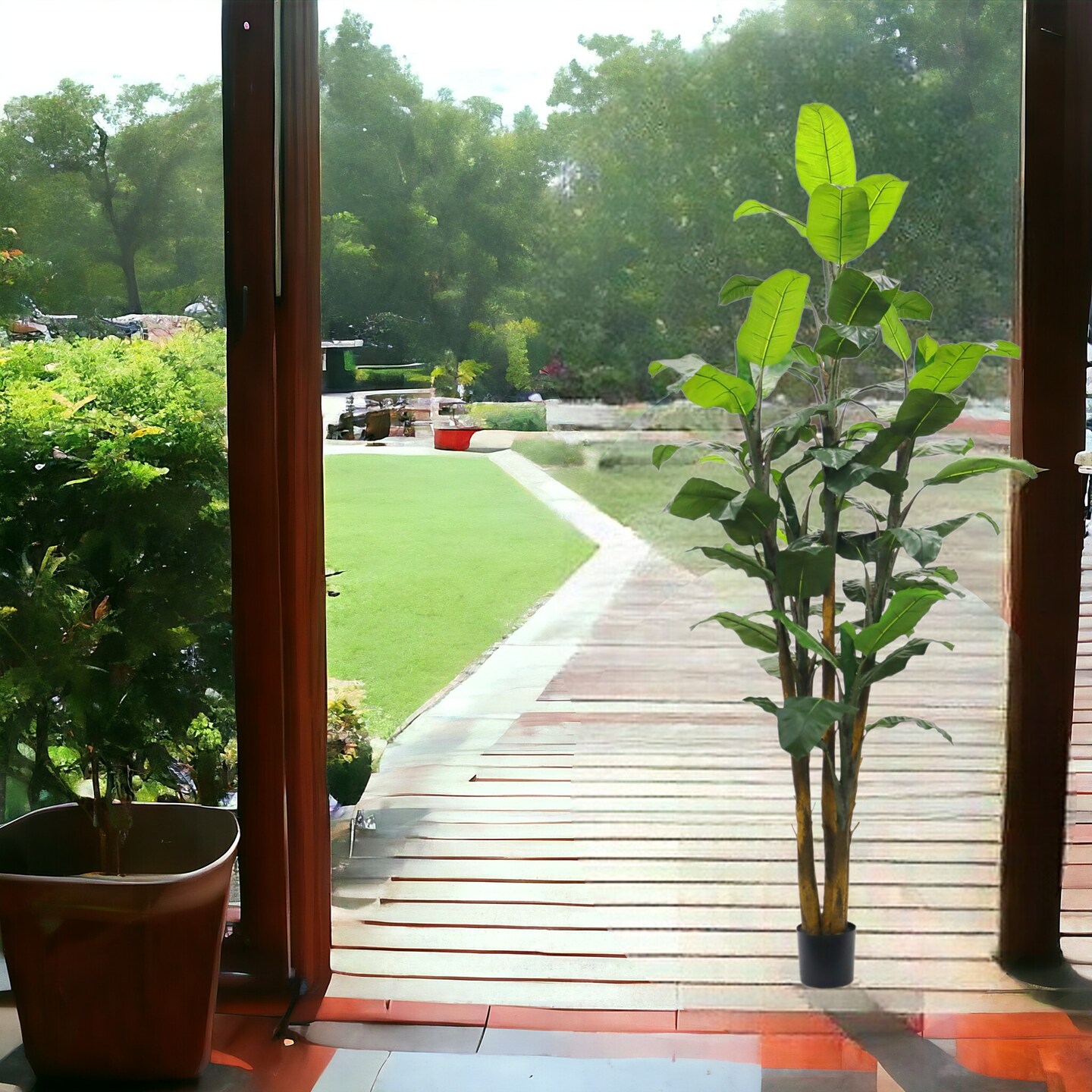 8ft Banana Tree - 50 Realistic Leaves, Black Pot, Indoor Decor, Ideal for Homes, Offices, and Lobbies - Year-Round Tropical Accent, Floral Home by Artificial Flowers