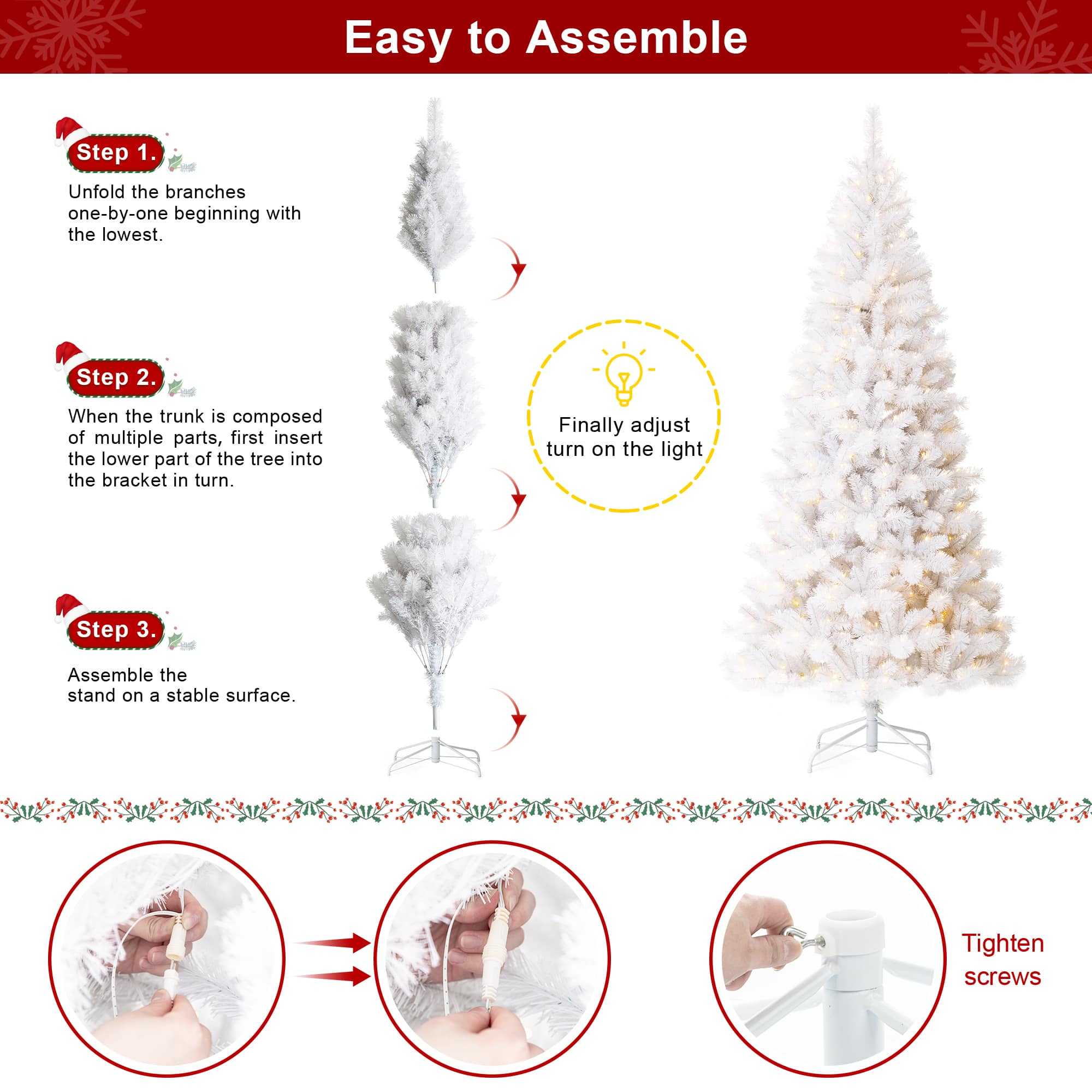 8ft. Pre-Lit White Pine Artificial Christmas Tree, Warm White Lights