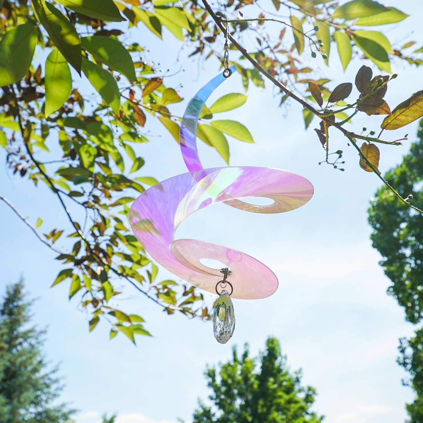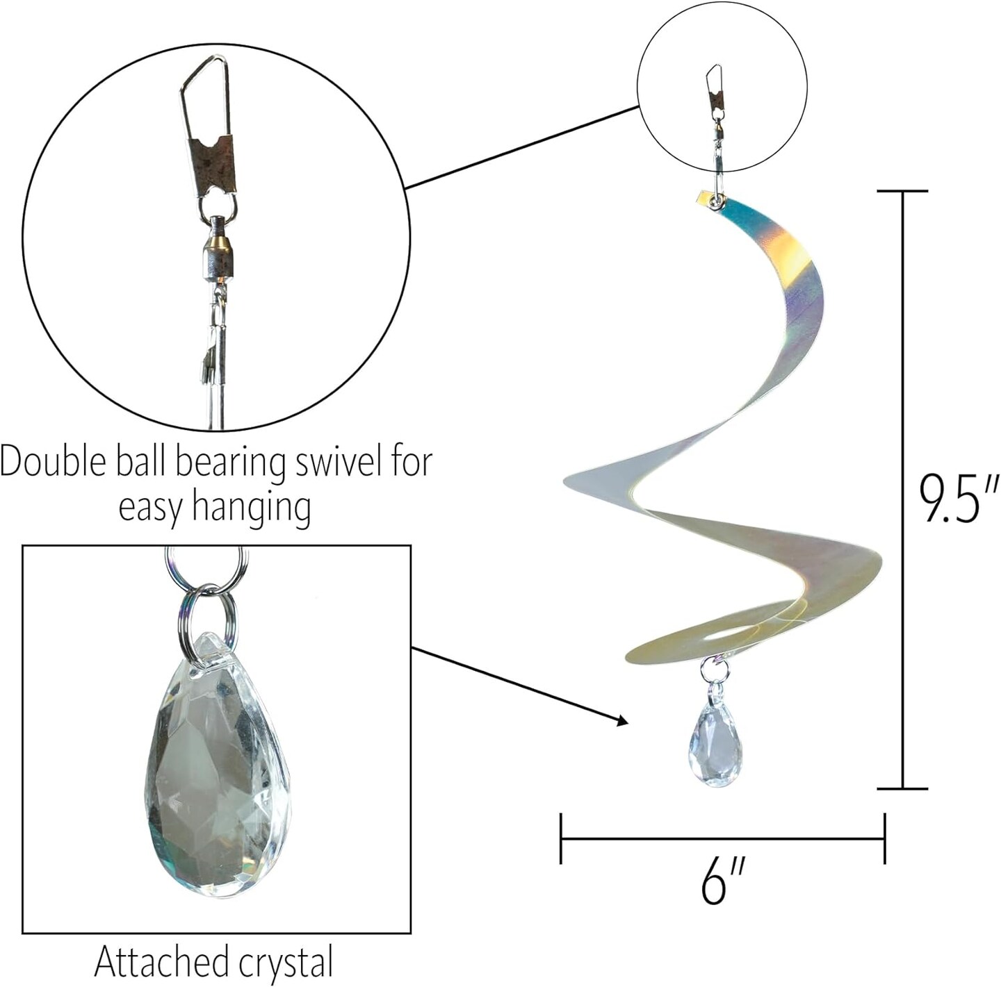 8-inch Iridescent Tear Drop Curlie with Crystal Spinner