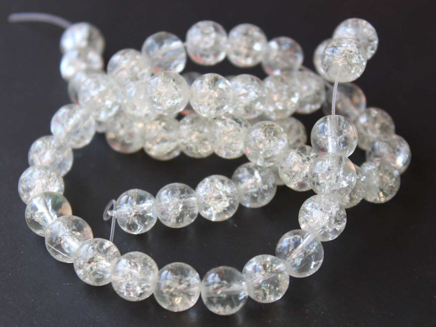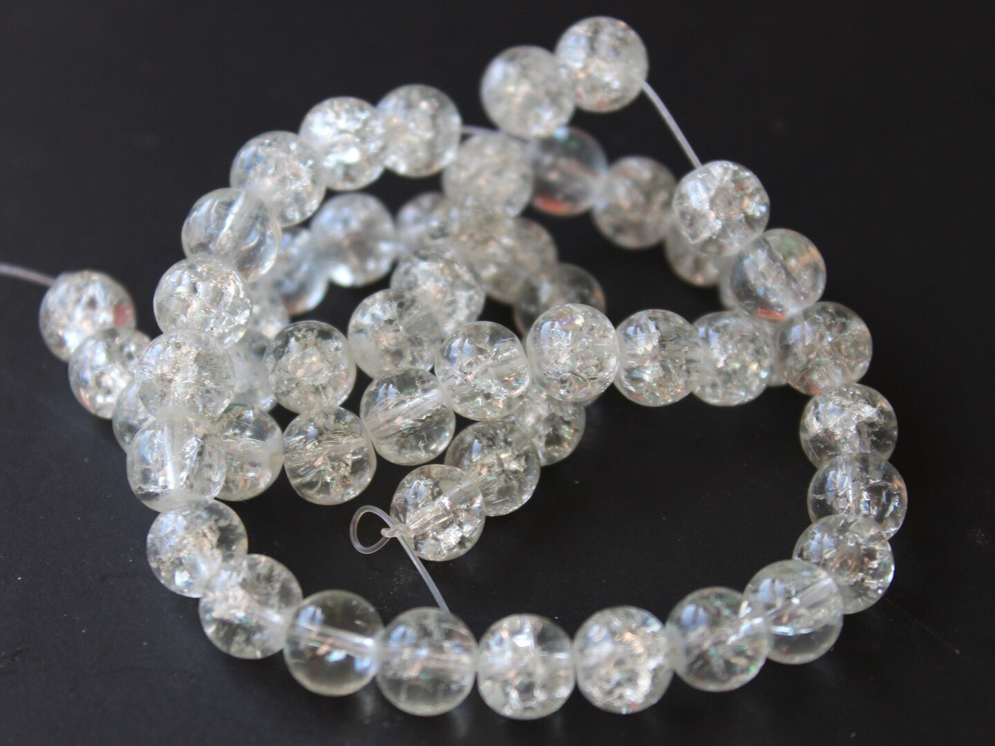 8mm Clear Round Crackle Glass Beads