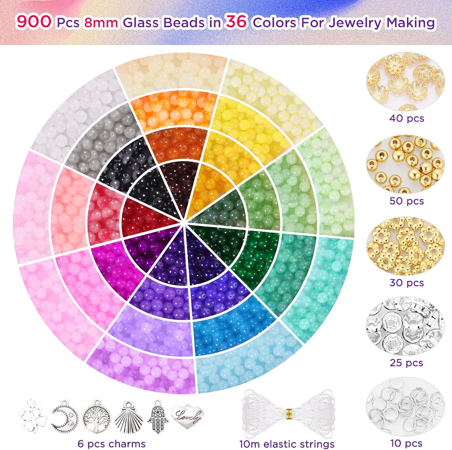 8mm Glass Beads for Bracelets (#2 Multicolored)