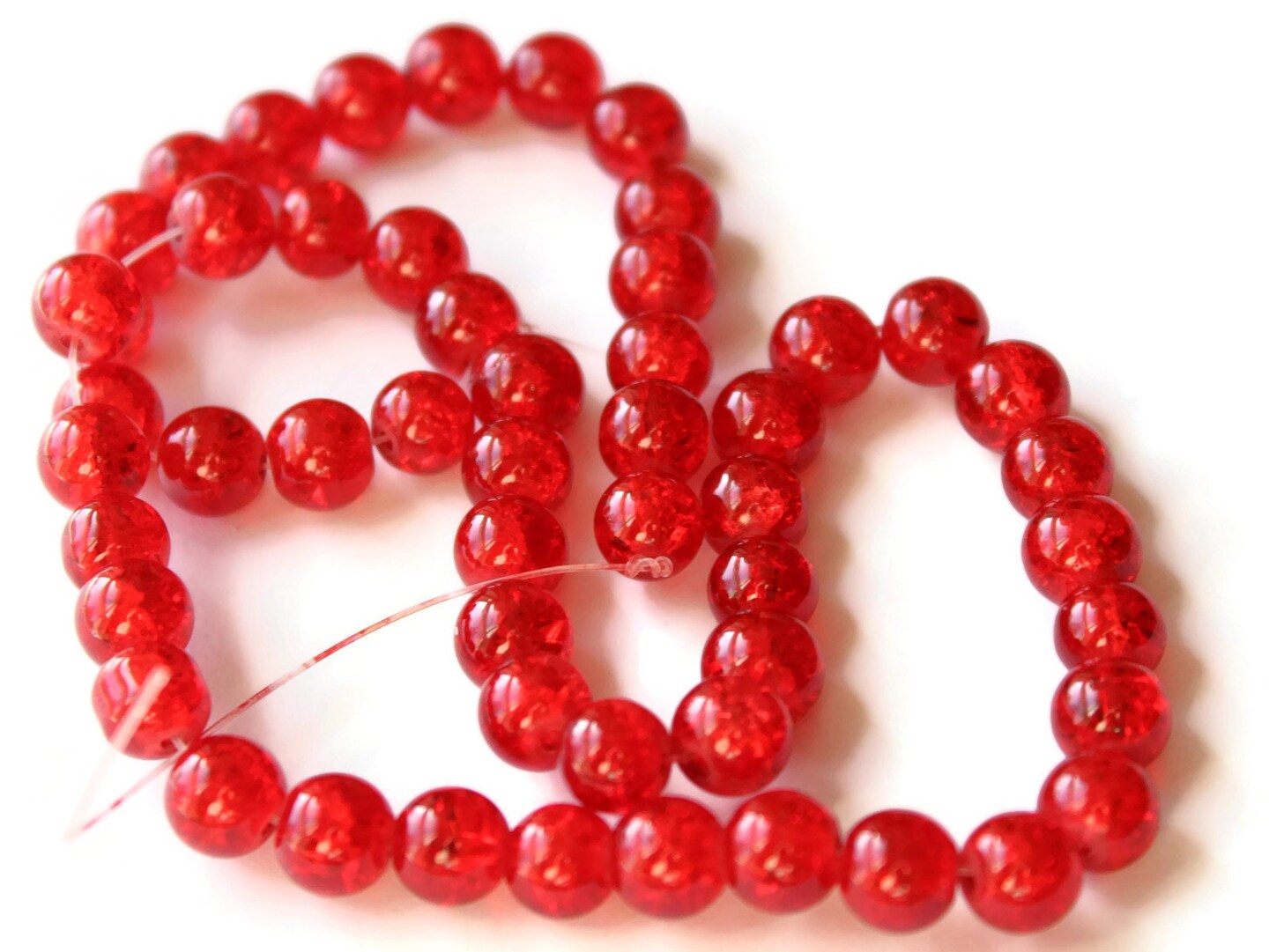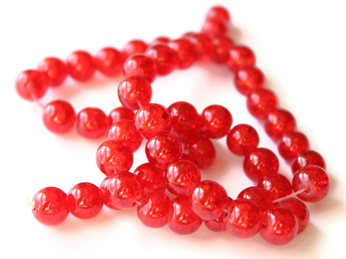 8mm Round Red Crackle Glass Beads