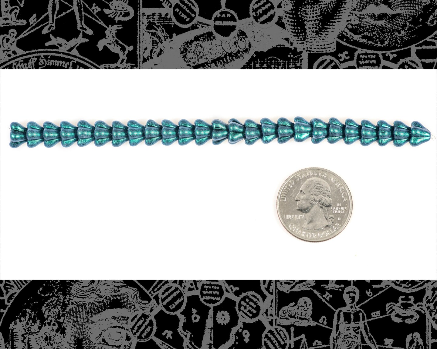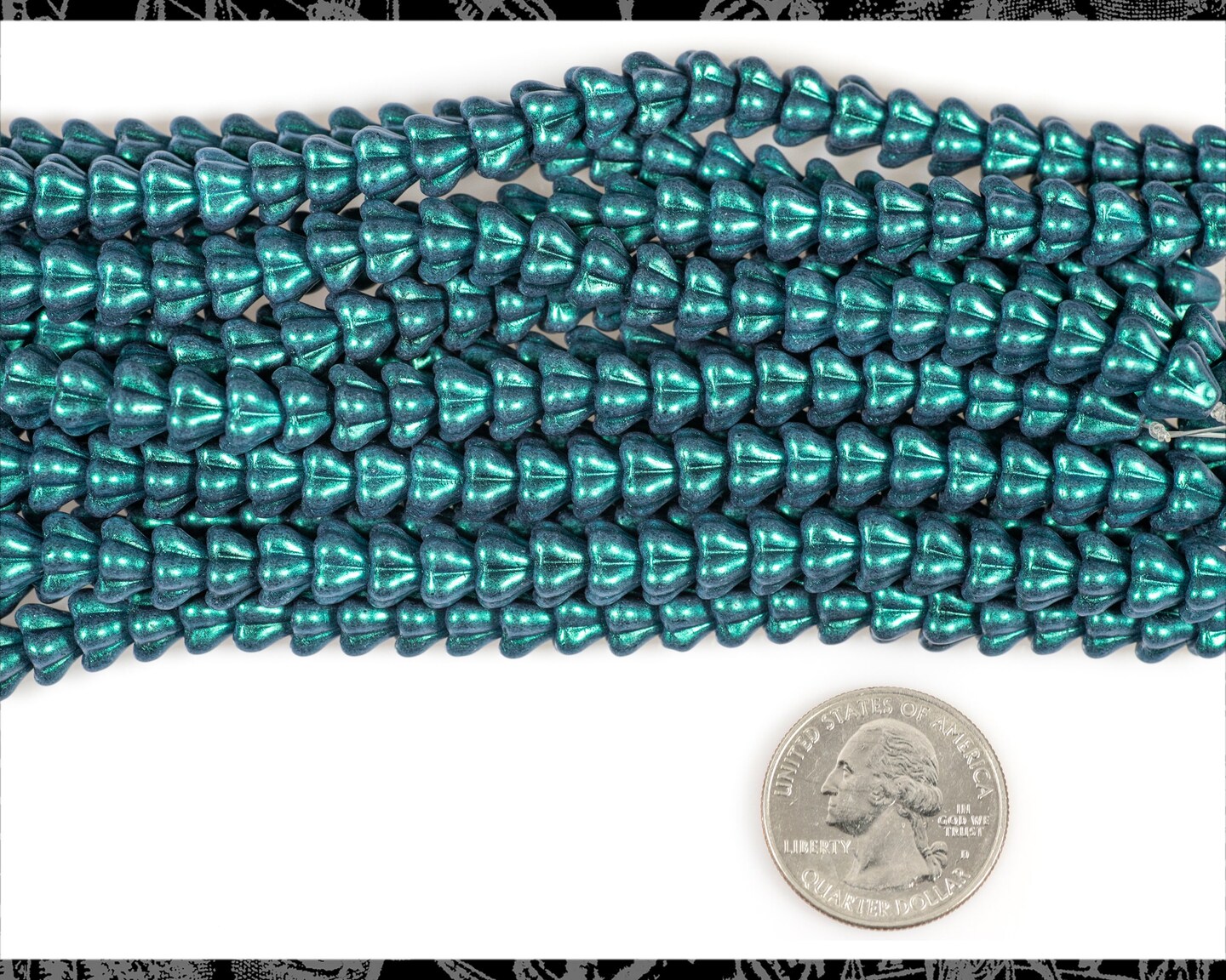 8mm x 6mm Glass Bell Flowers Metallic Turquoise - One Strand with 23-25 beads GB-FB19