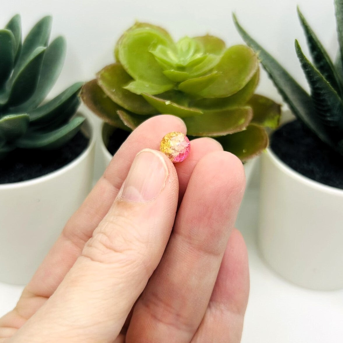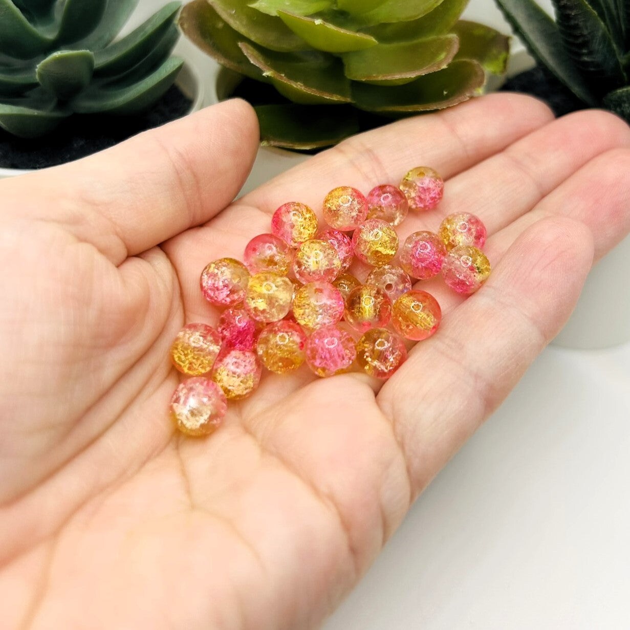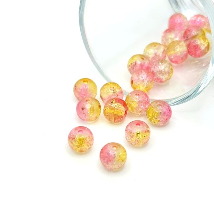 8mm Yellow and Pink Crackle Glass Beads